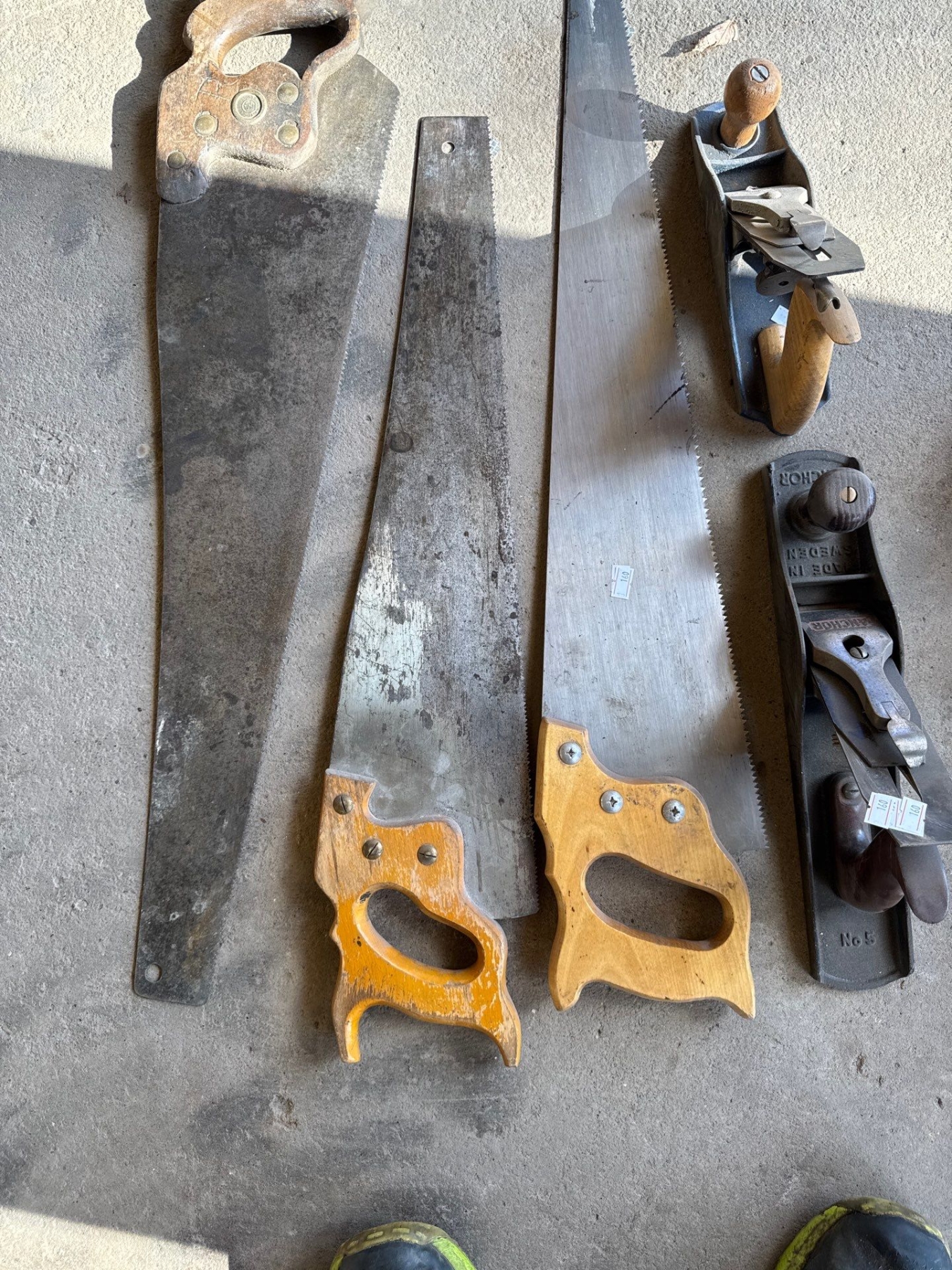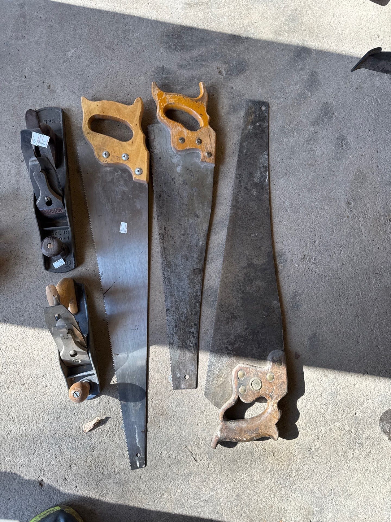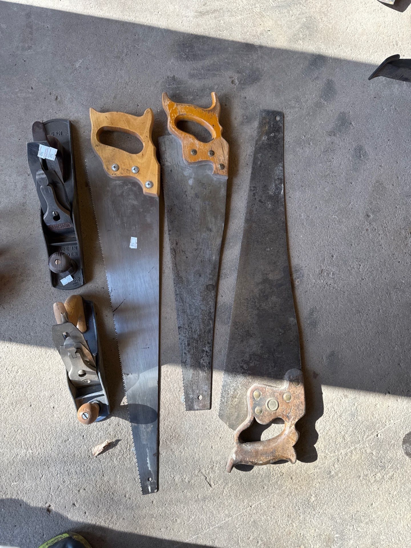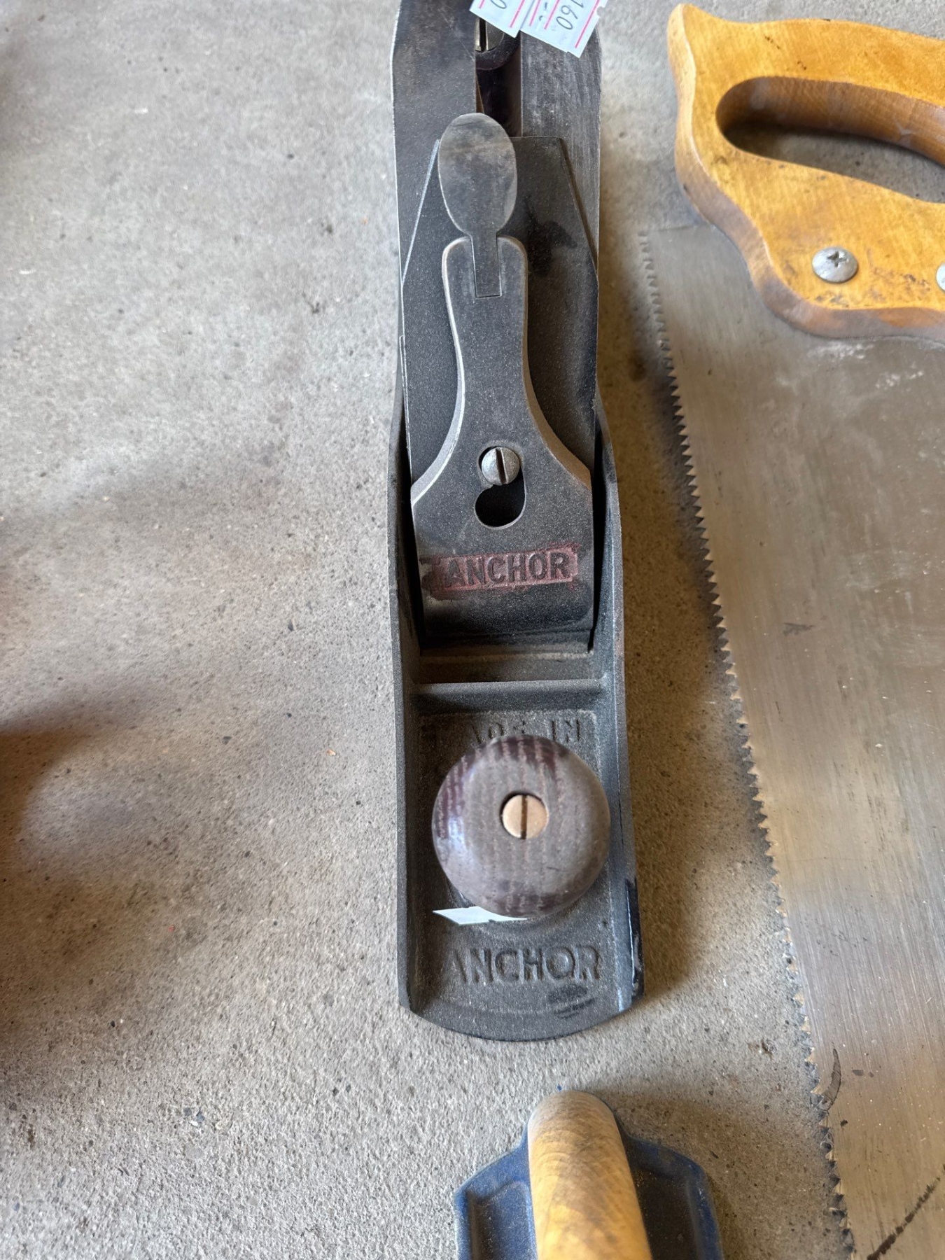 Hand, saws and woodworking, 2 planes anchor made in Sweden number five the other one is unknown