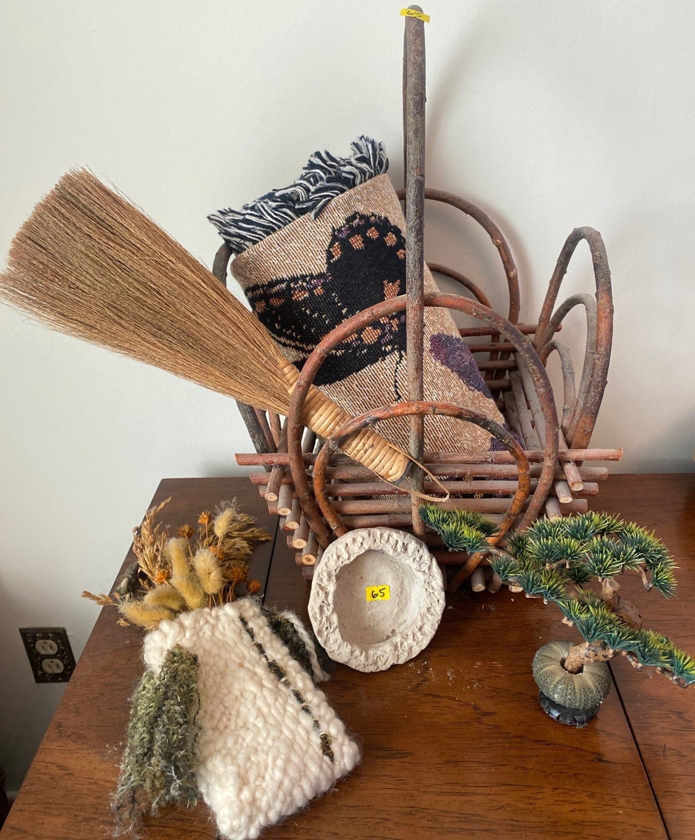 Handmade Wood Basket Butterfly Tapestry Faux Bonsai Tree Decorative Broom Stone Ashtray & More