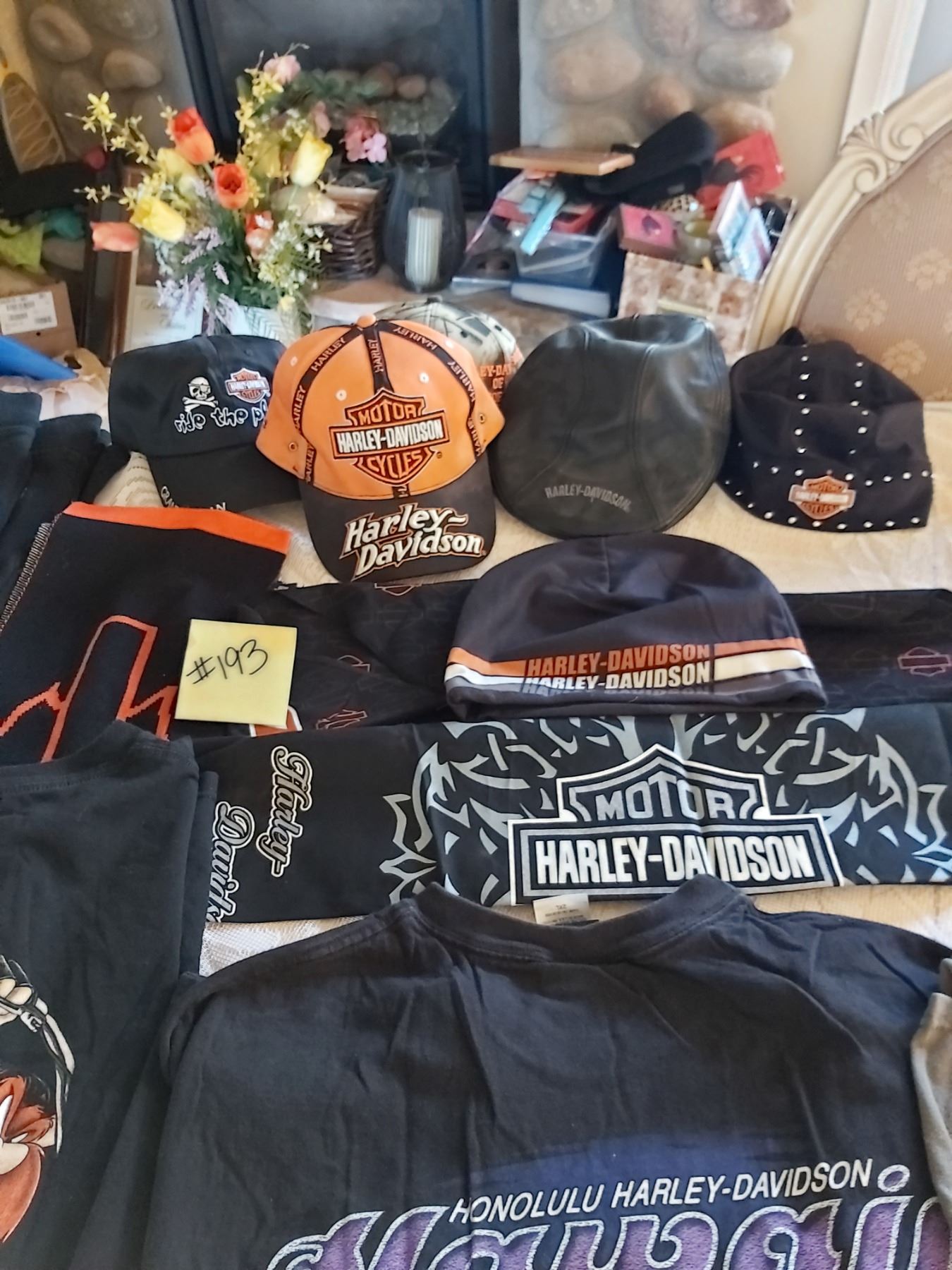 Harley Davidson - 6 Hats, 4 Short Sleeve Shirts (XXL), Scarves, Shorts, Fleece Pants