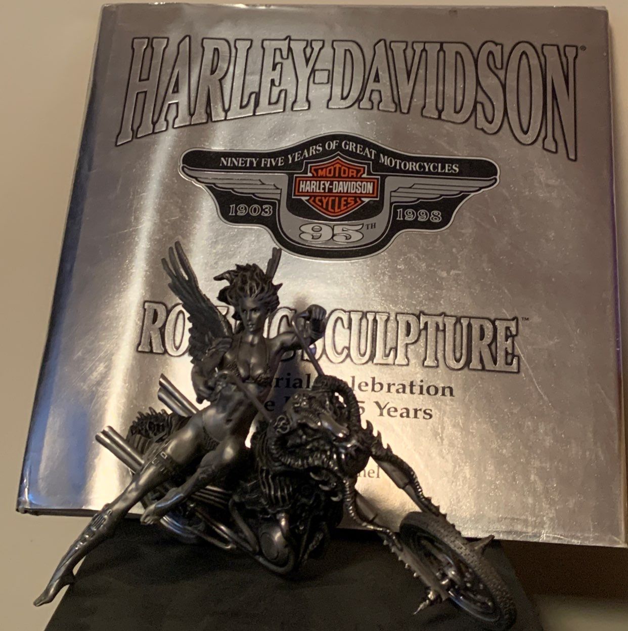Harley Davidson Hard Cover Book w/ Hog Figurine 9L
