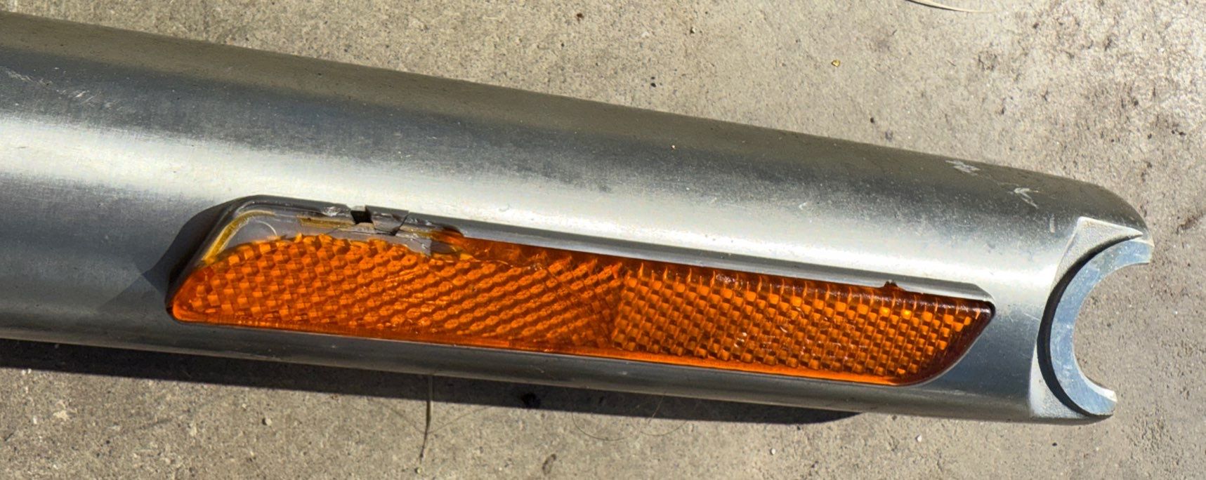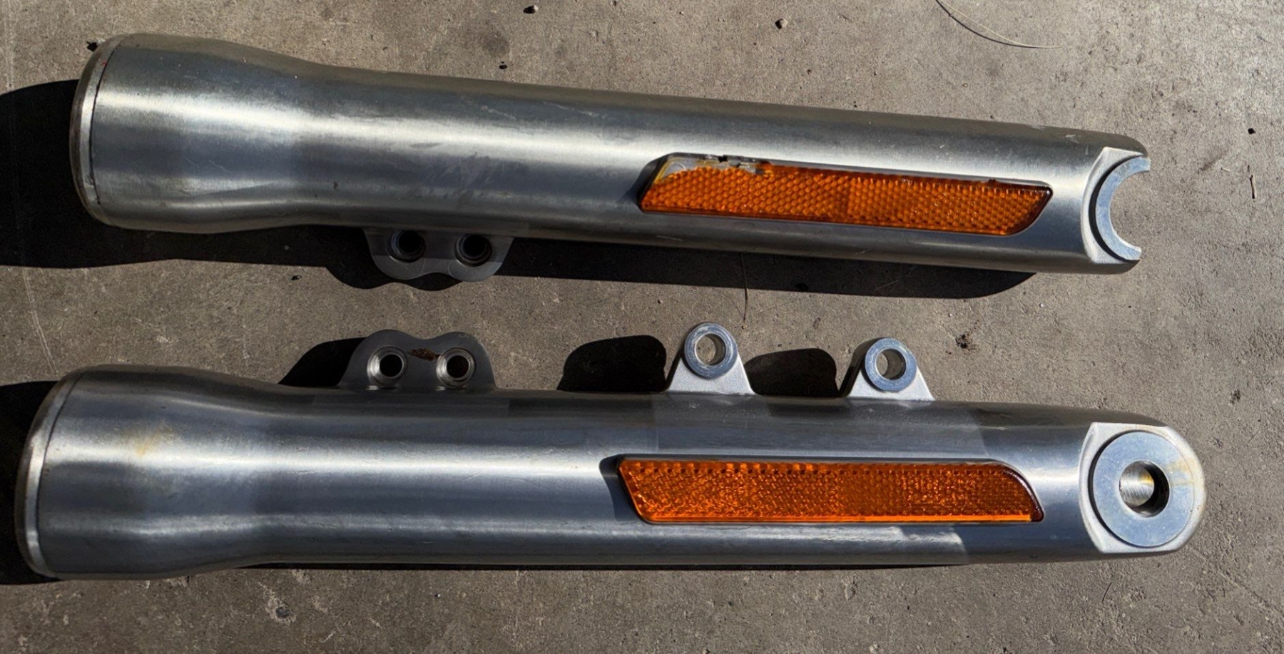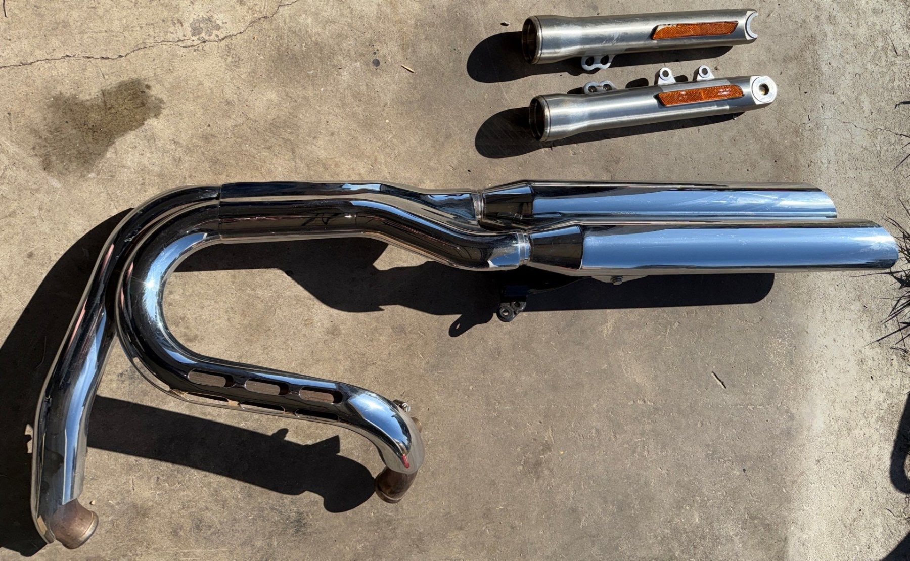 Harley Davidson exhaust and fork sliders chrome (One Has Cracked Light Casing)