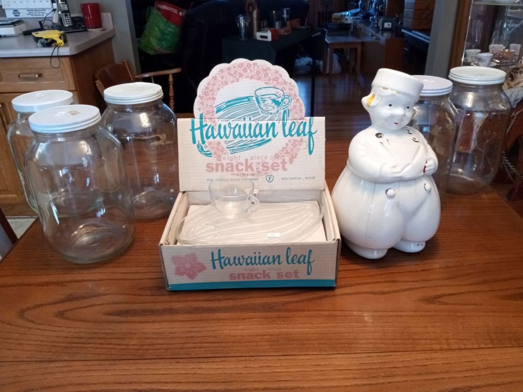 Hawaiian Leaf Snack Set With Large Glass Jars And Cookie Jar