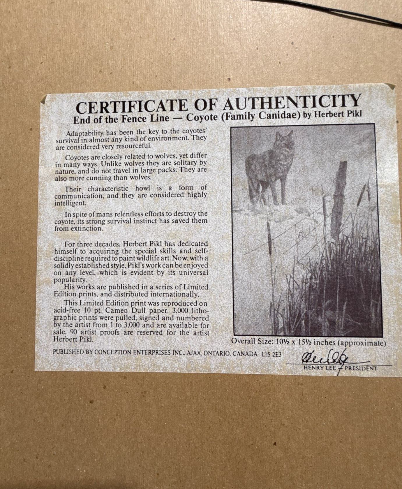 Herbert Pikl End of the Fence Line Print 10.5Wx15.5H