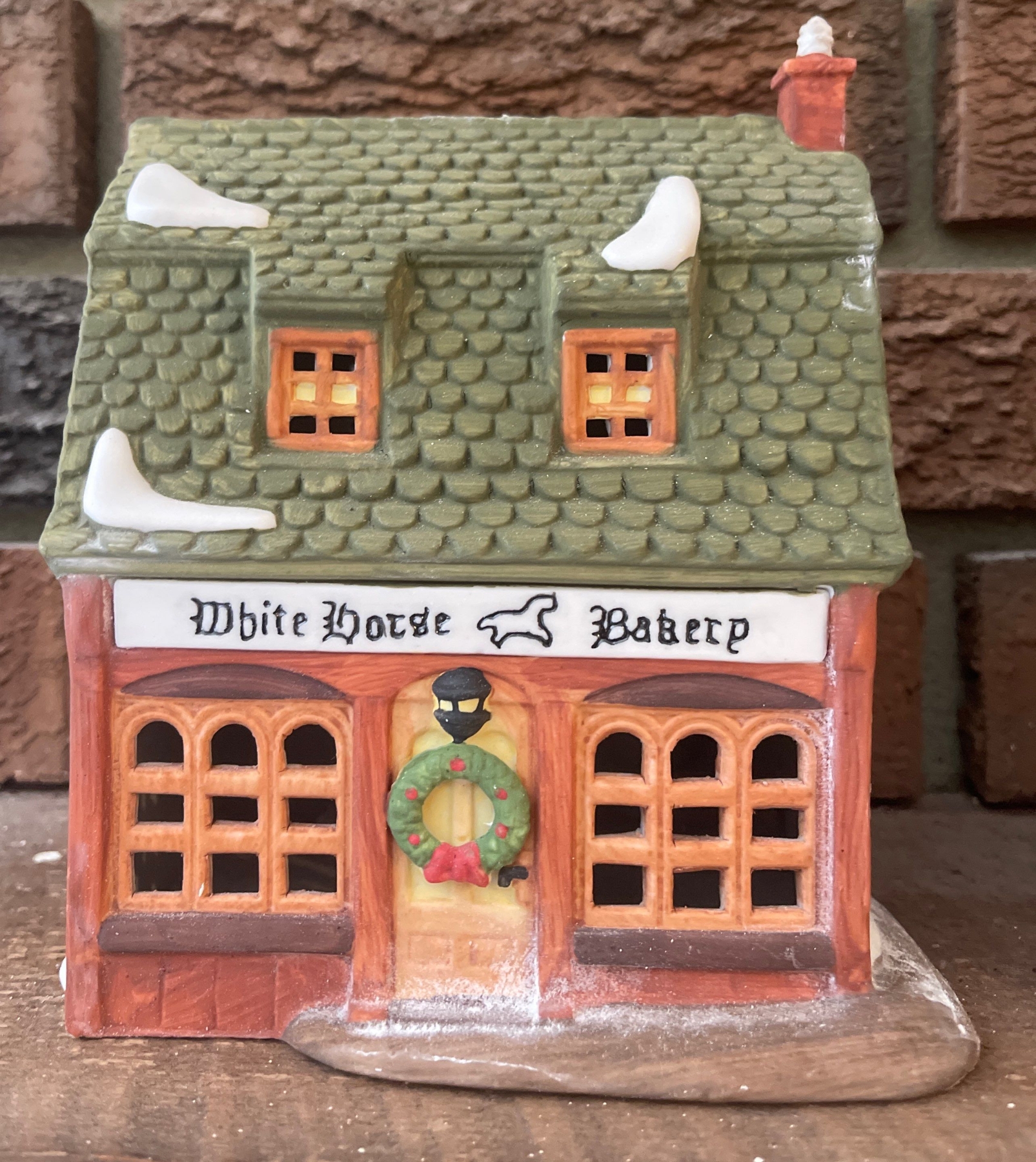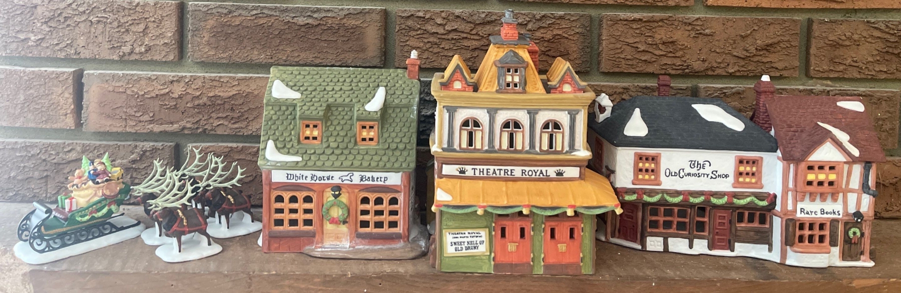 Heritage Village Collection Light Up Holiday Decor 8: tallest Bakery, Theatre Royal, The Old Country Shop, & Santa + his Reindeer