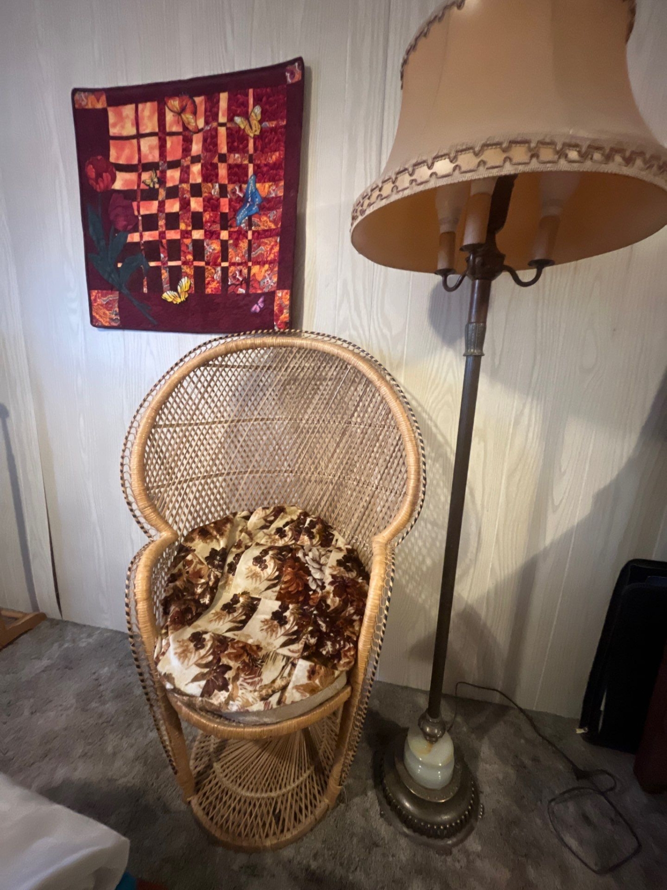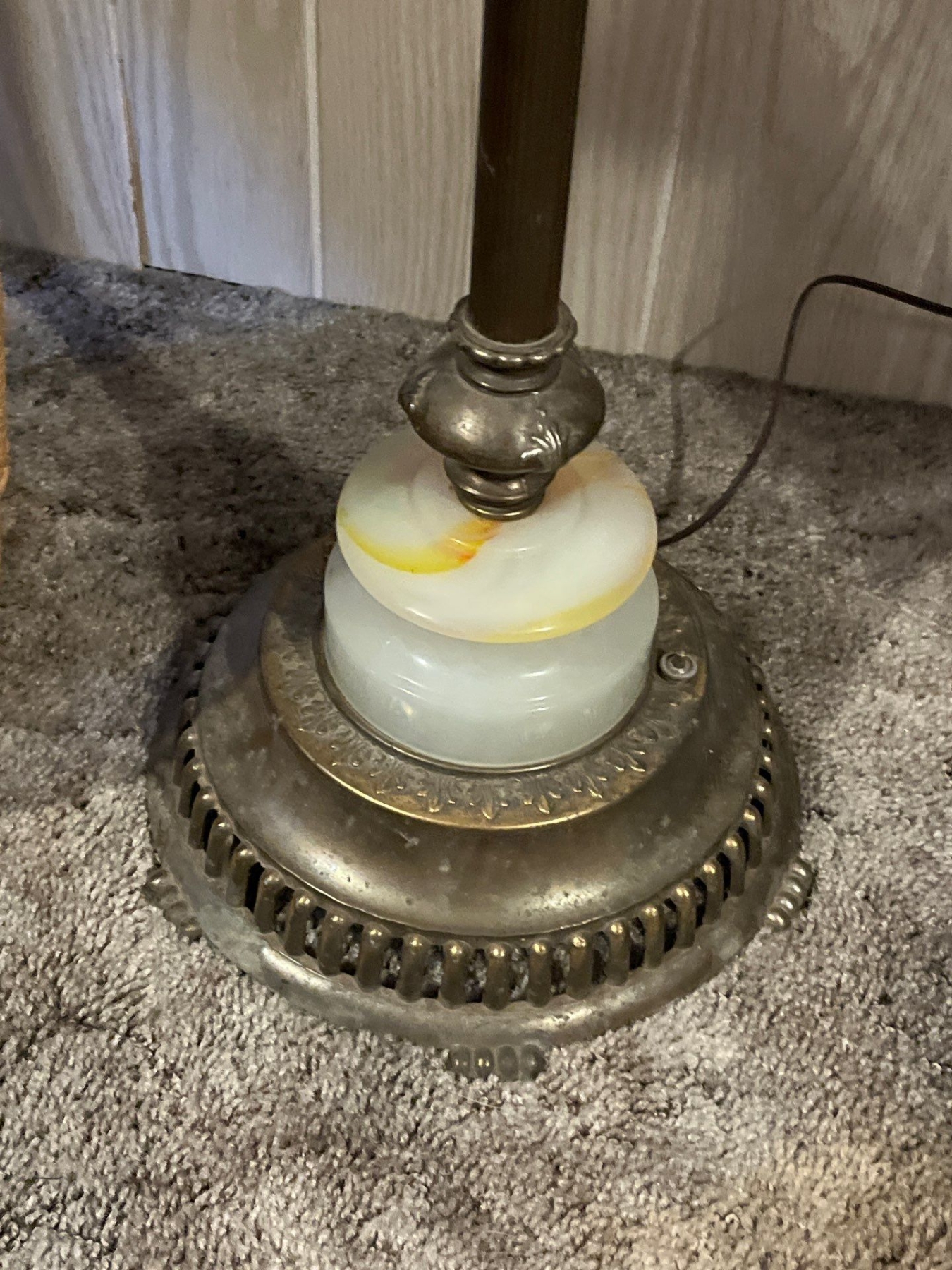 Hi back chair with a antique brass lamp with marble base lampshade in amazing condition