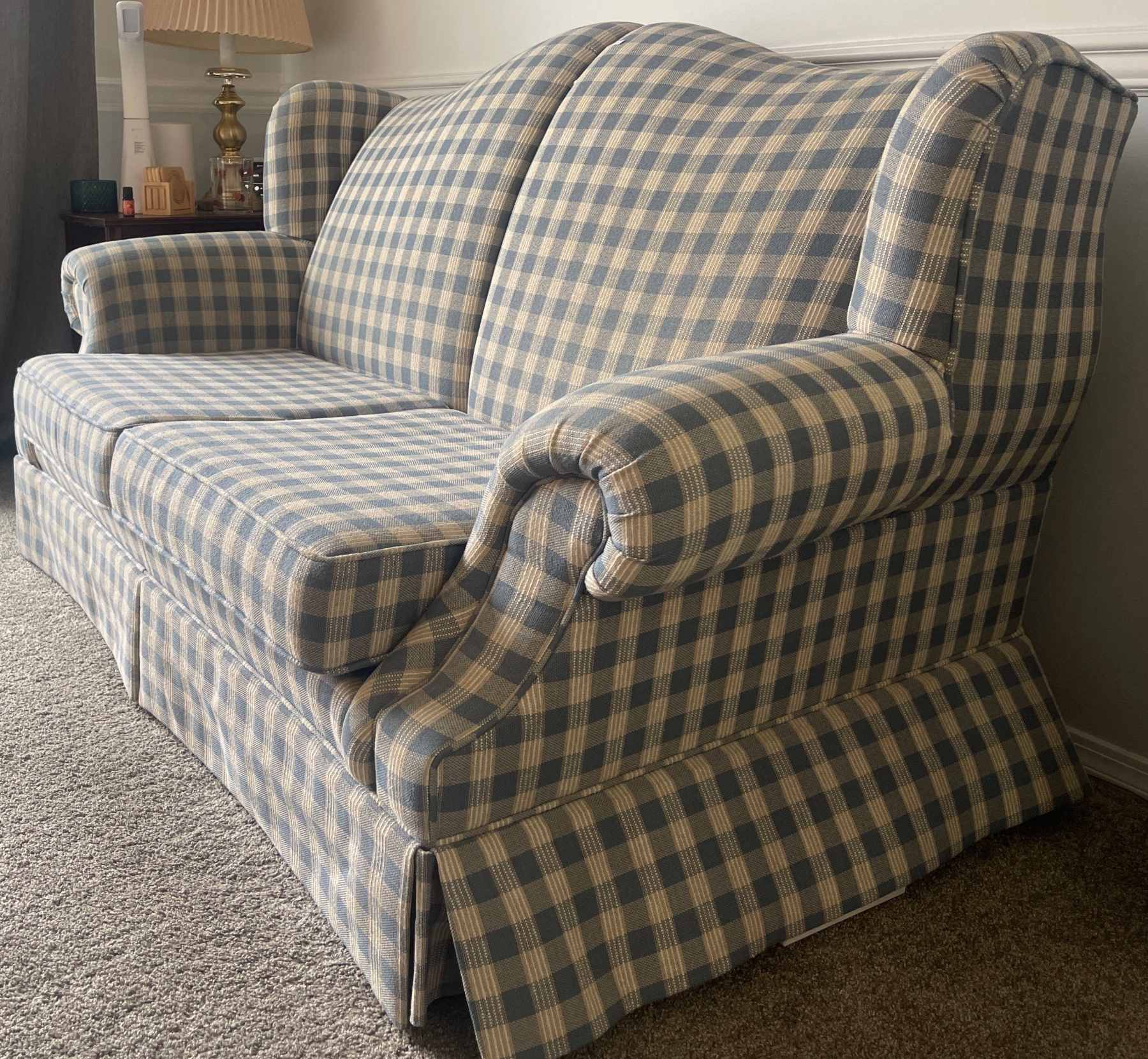 High Quality Plaid Fabric Love Seat  60w x 37d x 35h  Durable Well Made Furniture Small Sofa