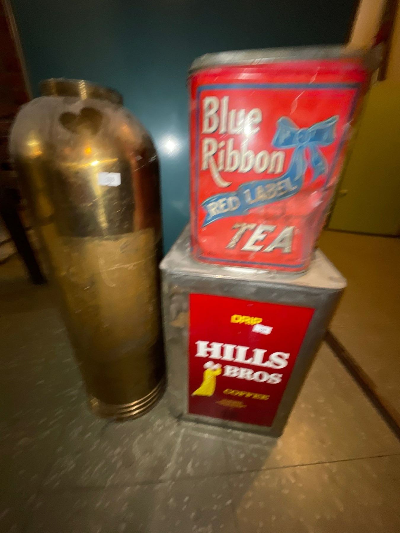 Hills Bros Coffee Can 14T Blue Ribbon Red Label Tea Can