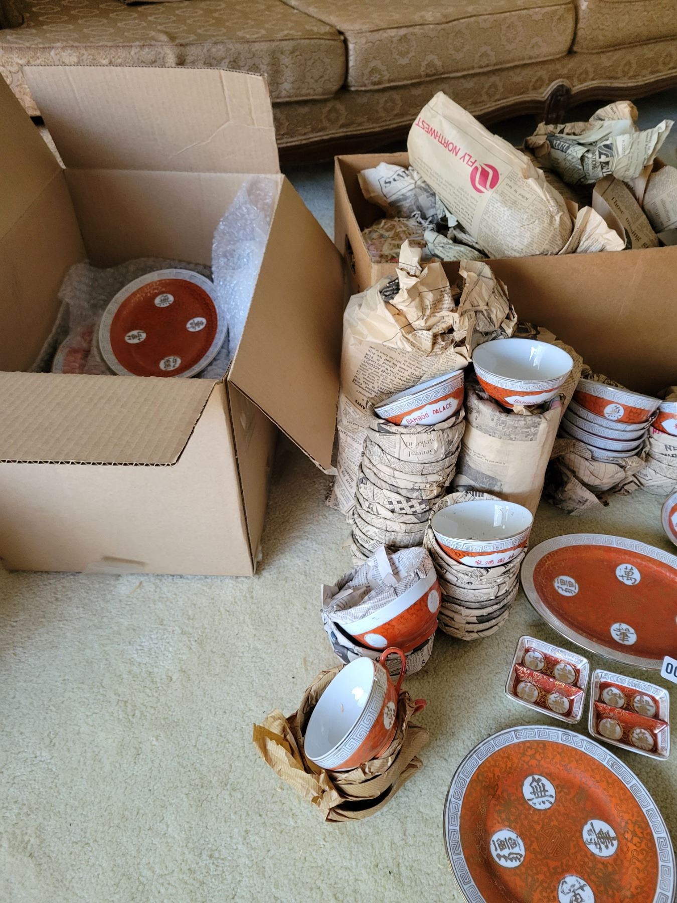 The Bamboo Palace was one of the First Chinese Food Restaurants in Edmonton. It was the first Chinese buffet and dim sum restaurant. Many Prime Ministers and Government Premiers have eaten off of these plates. This set has hundreds of pieces and the quality and design are exceptional. Prime Ministers since John Diefenbaker have dined on these dishes. John Lee was a founding father of Edmontons China Town as well.