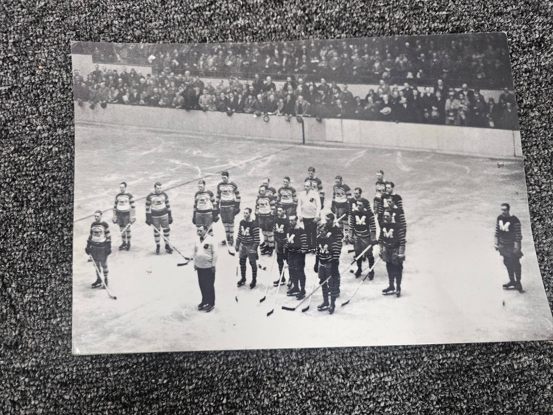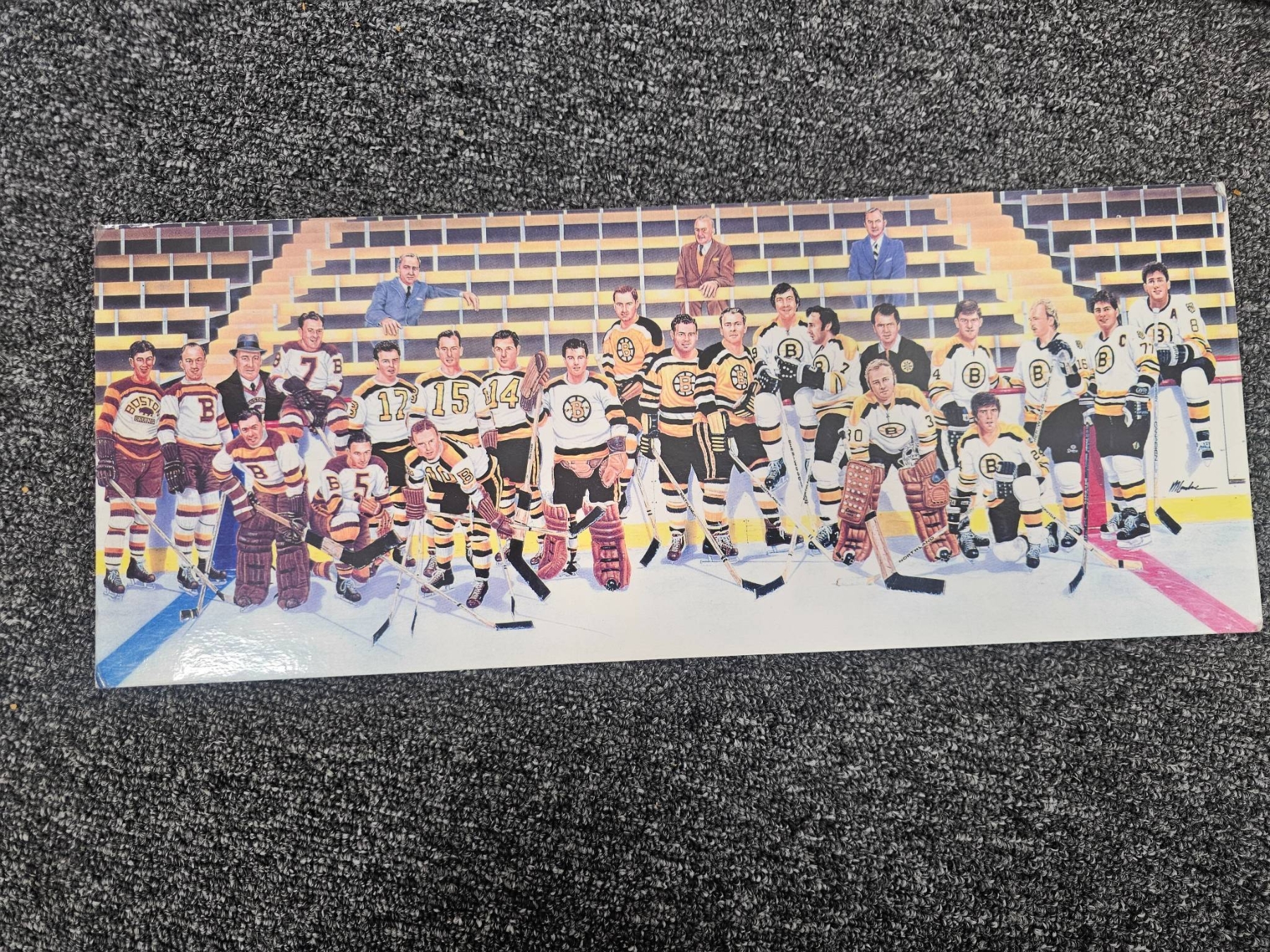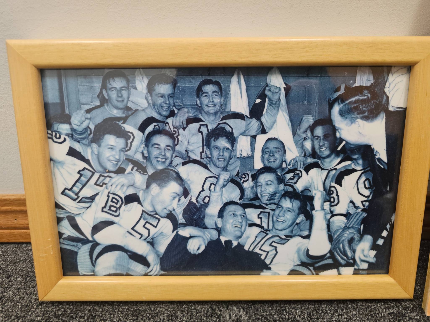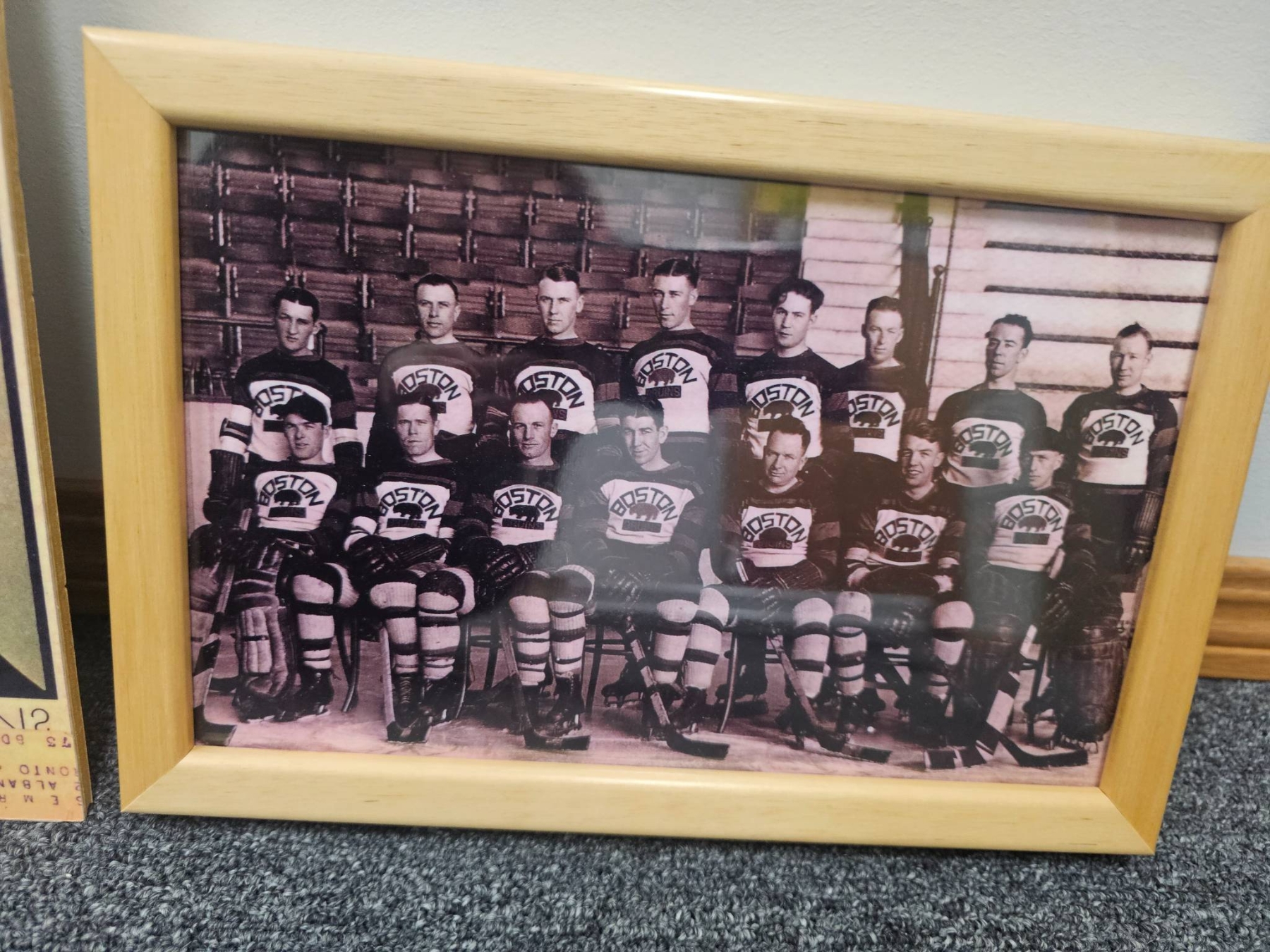 A captivating collection for hockey enthusiasts, featuring framed and unframed historical photographs of hockey teams and players, including color and black-and-white prints. Also includes the April 1972 issue of Maclean's magazine, with a cover story featuring noted hockey figure Derek Sanderson. The photographs showcase moments that reflect the rich heritage of the sport.