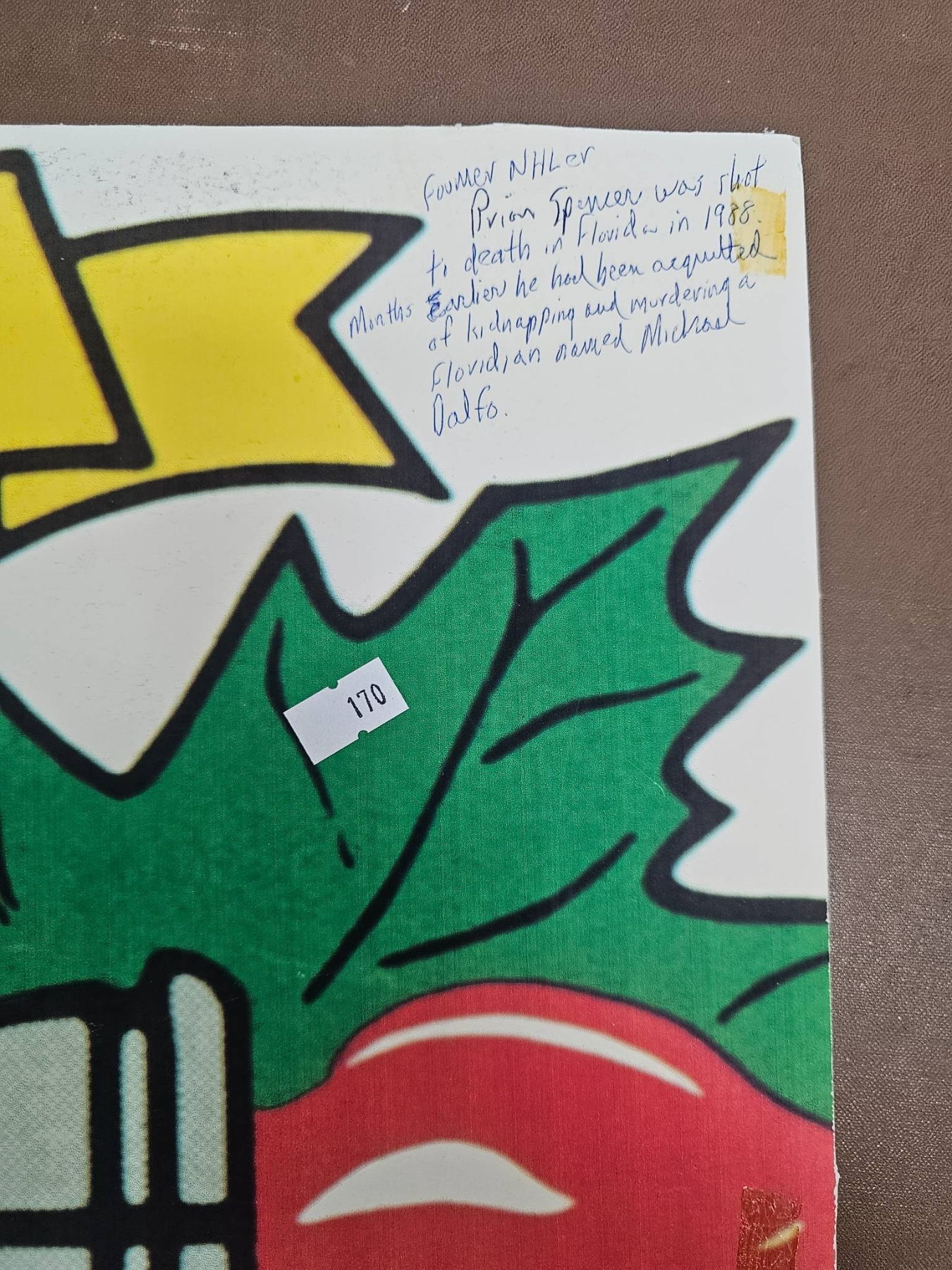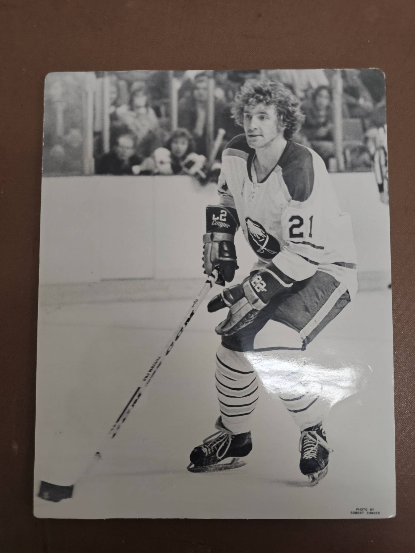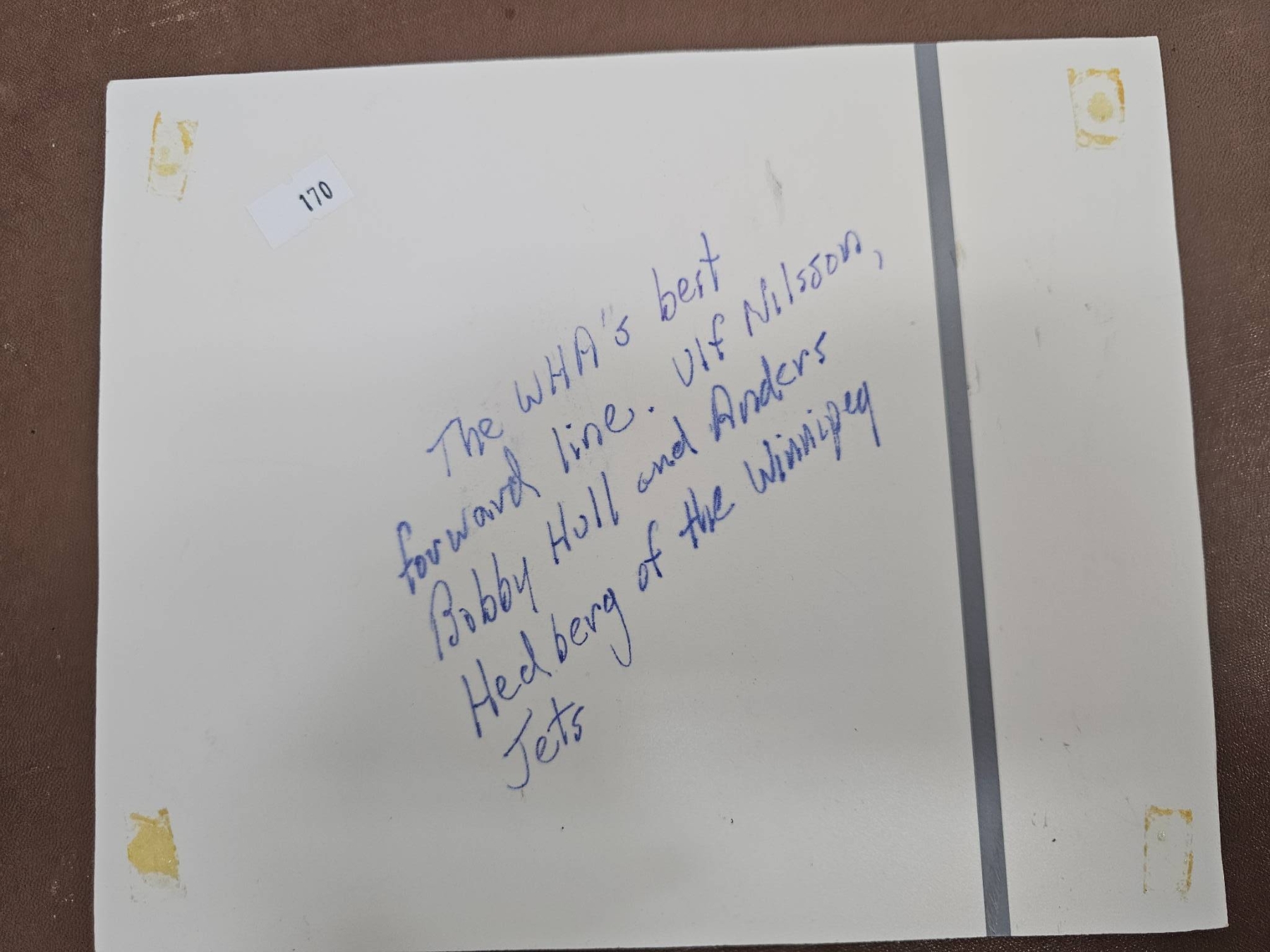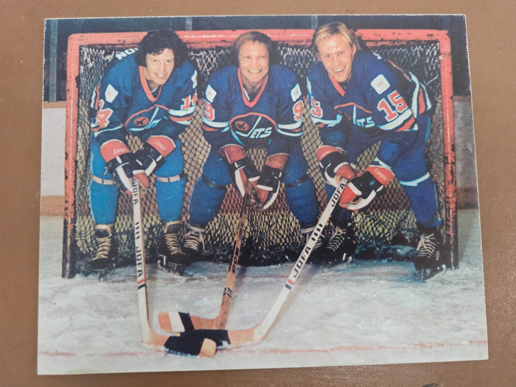 A diverse collection of hockey memorabilia including color and black-and-white photographs of various players and teams. The lot contains classic snapshots, such as goalies in action, individual player portraits, and group team poses. Some photographs include handwritten notes on the back for added context. Ideal for sports enthusiasts or collectors of hockey history.