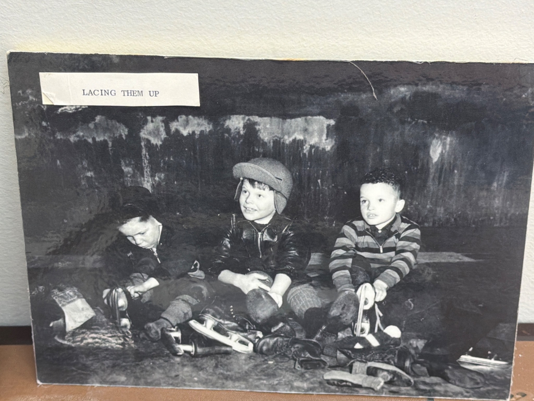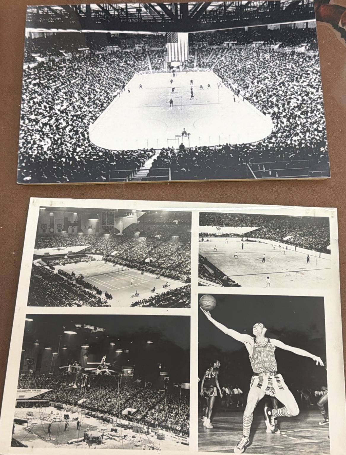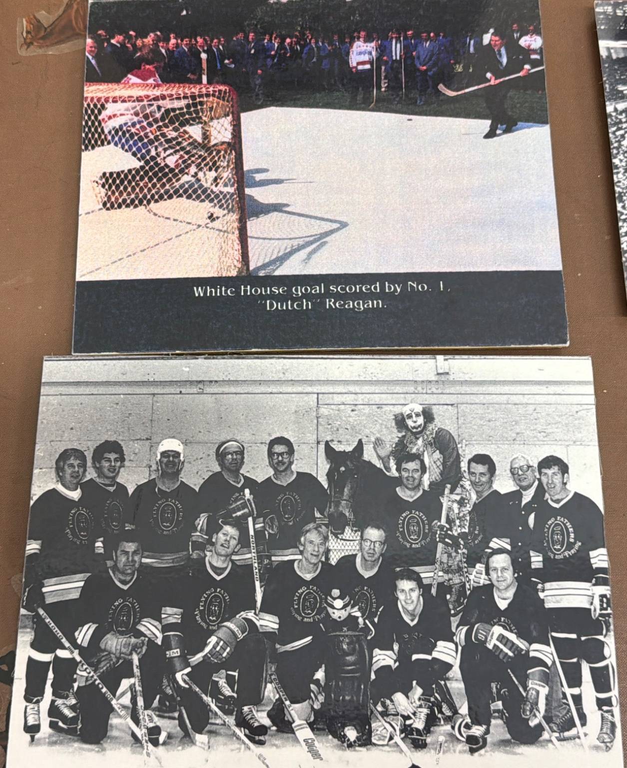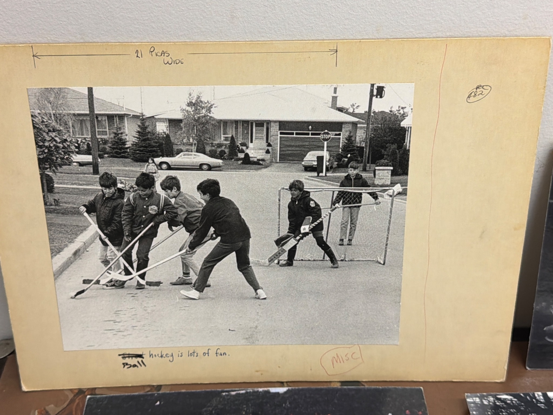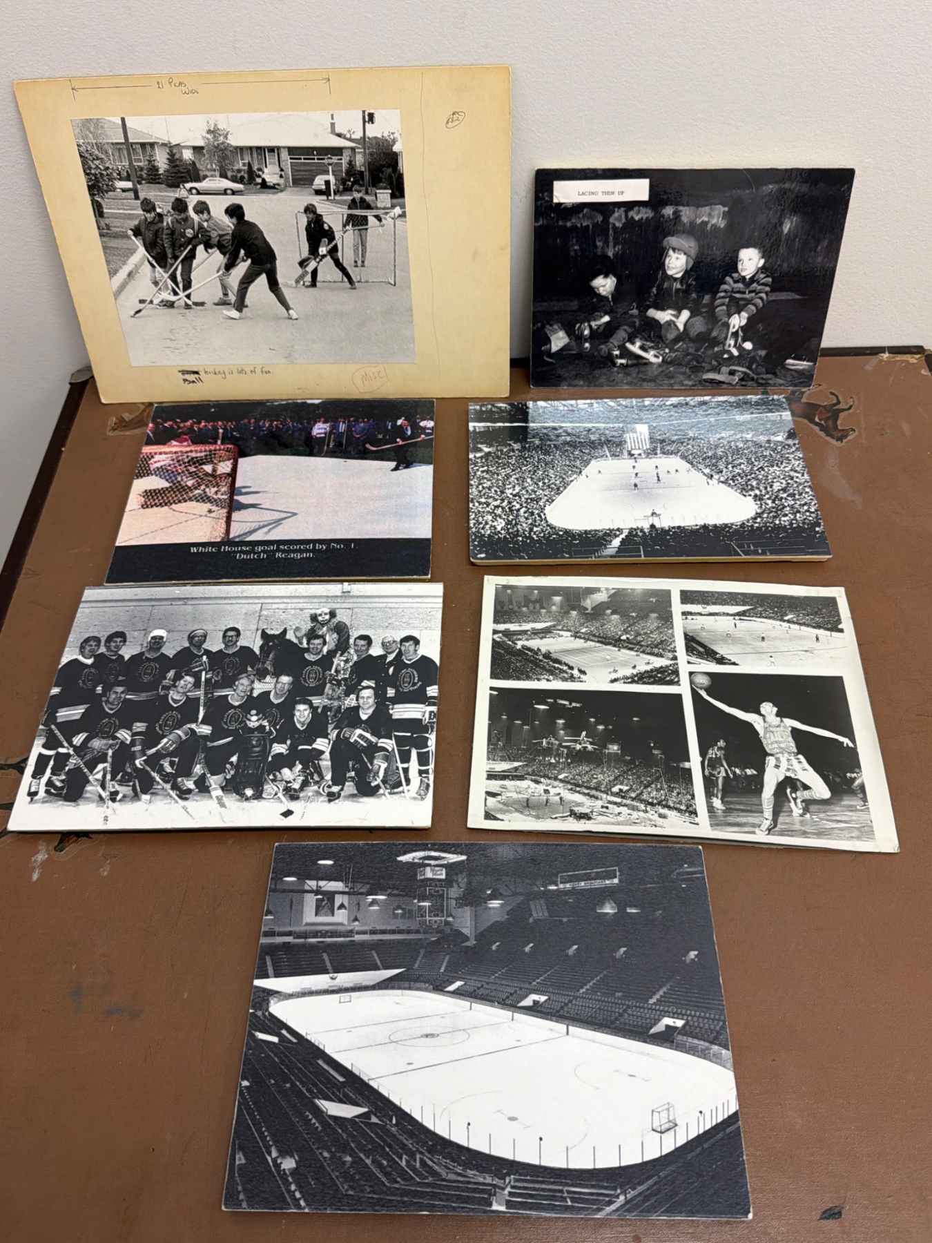 Black-and-white prints featuring hockey and sports scenes. Includes images of players, games, ice rinks, and children engaging in hockey activities. Some prints have captions or markings, adding to their historical or nostalgic value. Suitable for sports enthusiasts, collectors, or those interested in vintage sports photography.