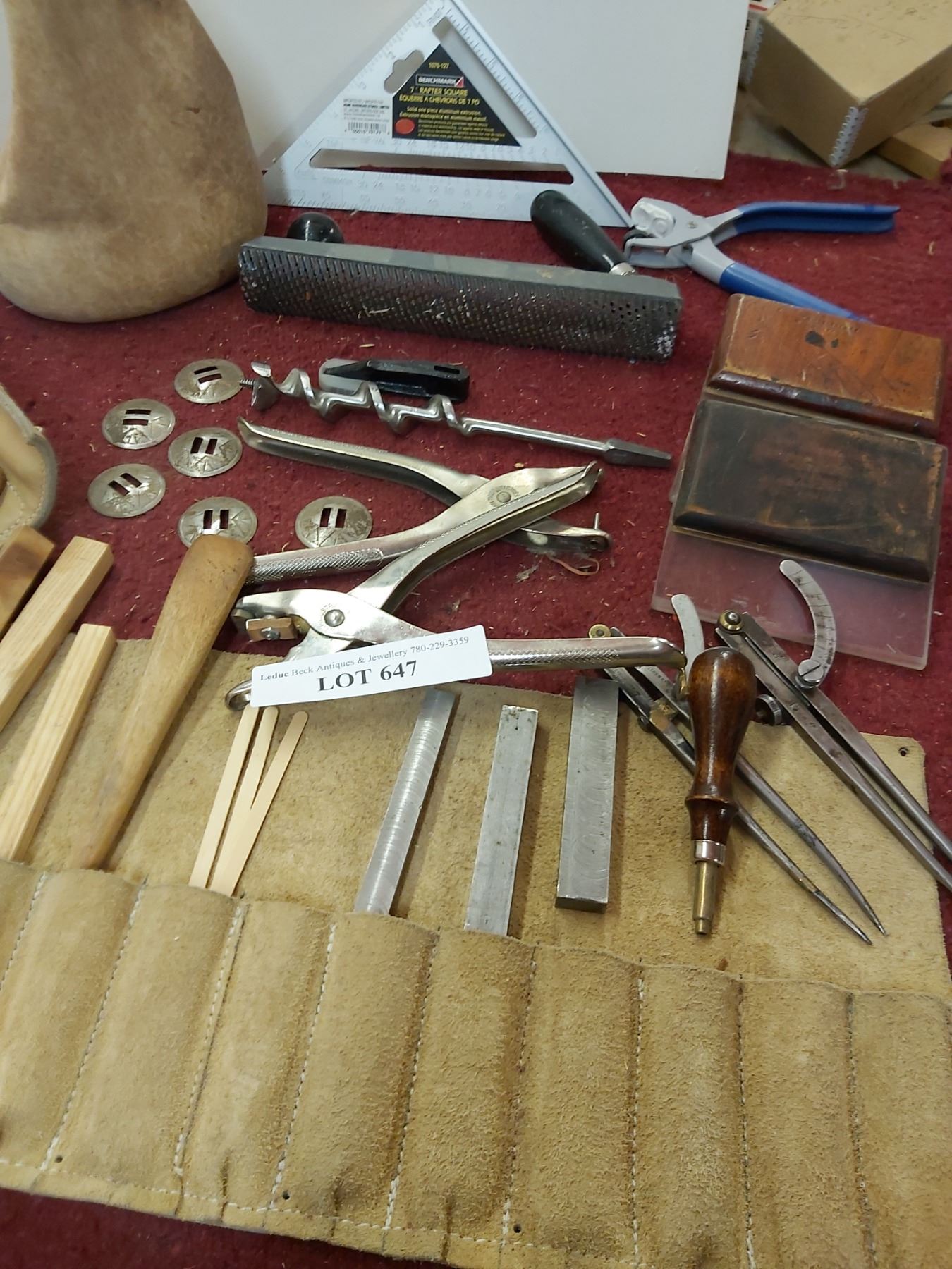 Hole punches, weight bag, square, other misc tools and tool pouches