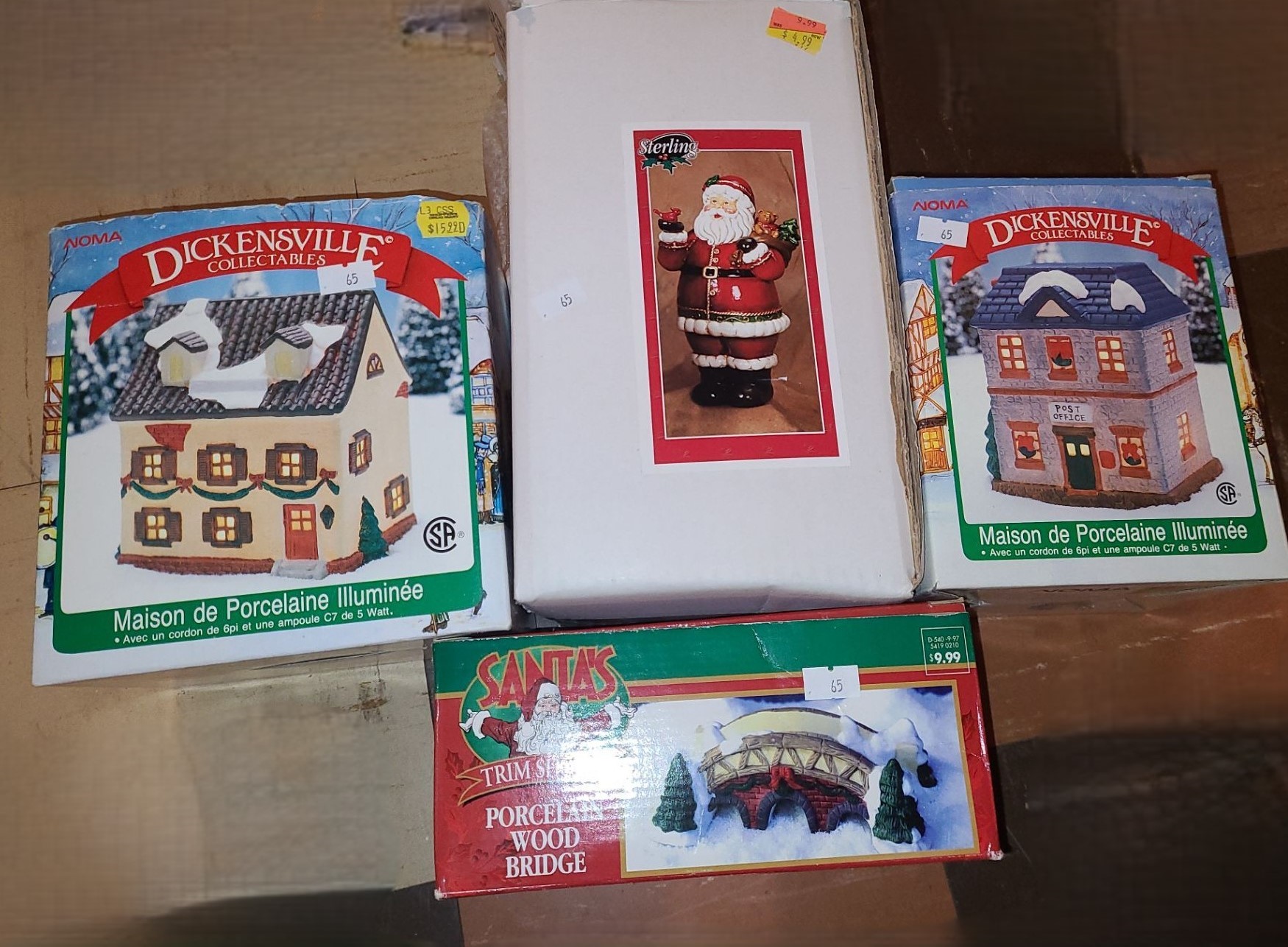 Holiday Decor Including: Two Noma Dickinsville Porcelain Homes; also Santa and Bridge