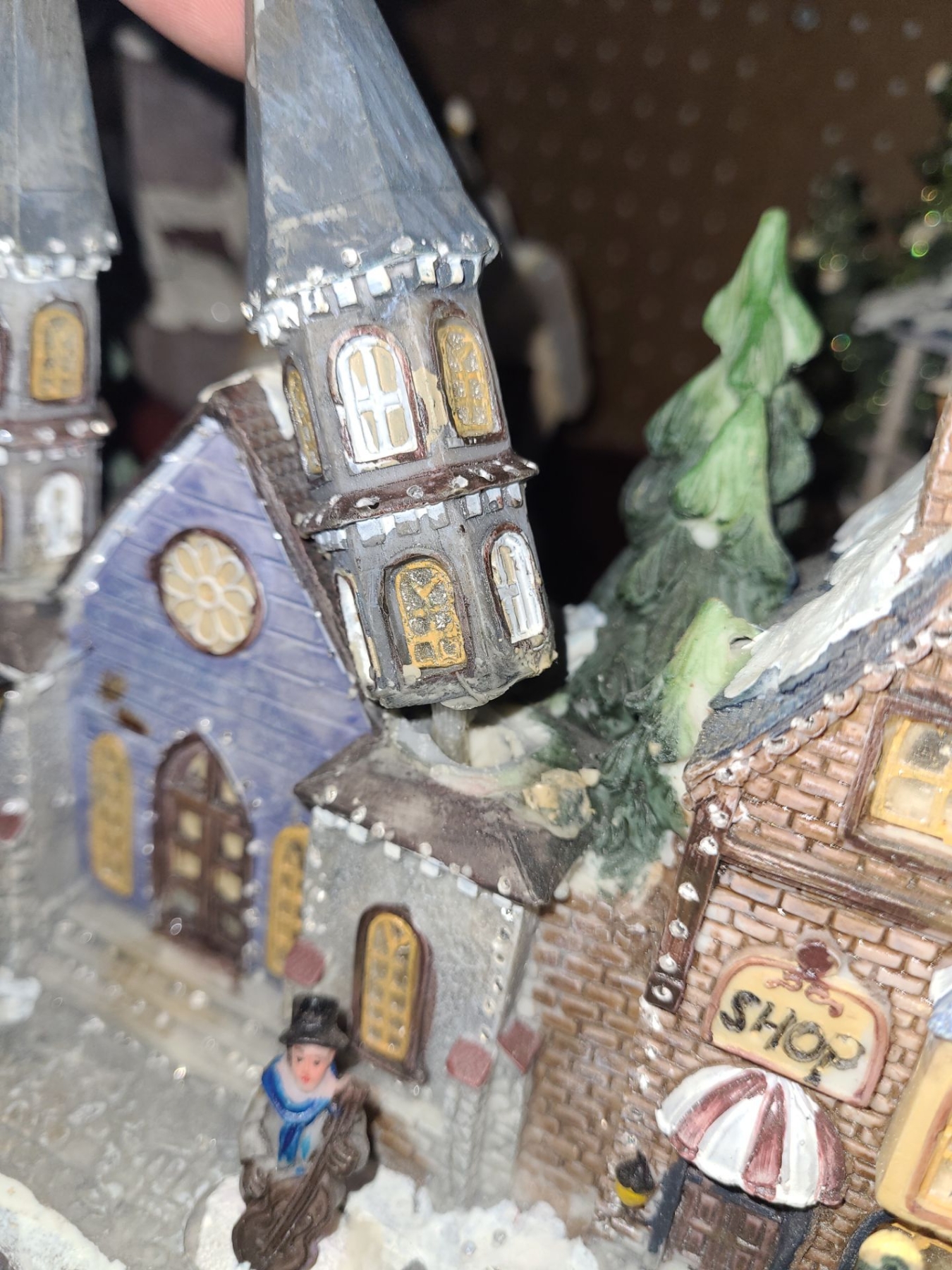 Holiday Homes: Christmas Villages (One Steeple Broken but Attached) and Carolers
