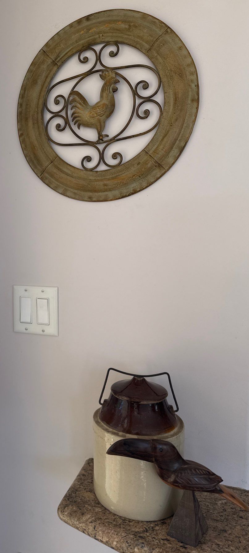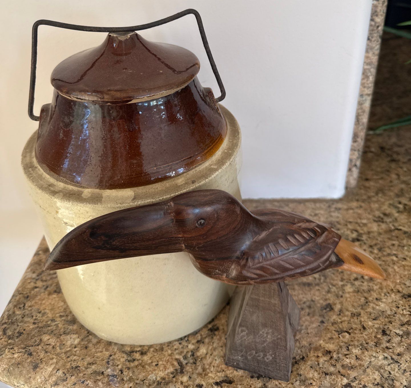 Home Decor Bundle- Wood Bird, Wall Hanging & Vintage Crock