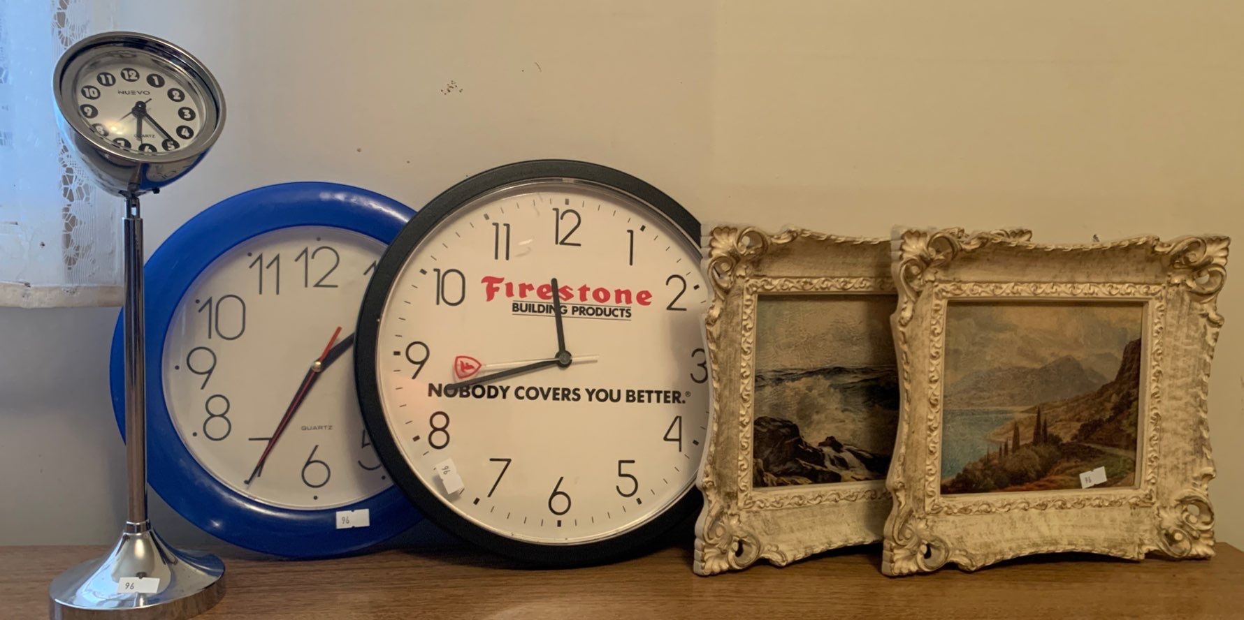 Home Essentials - Clocks, Vintage Prints (10x5 Each)