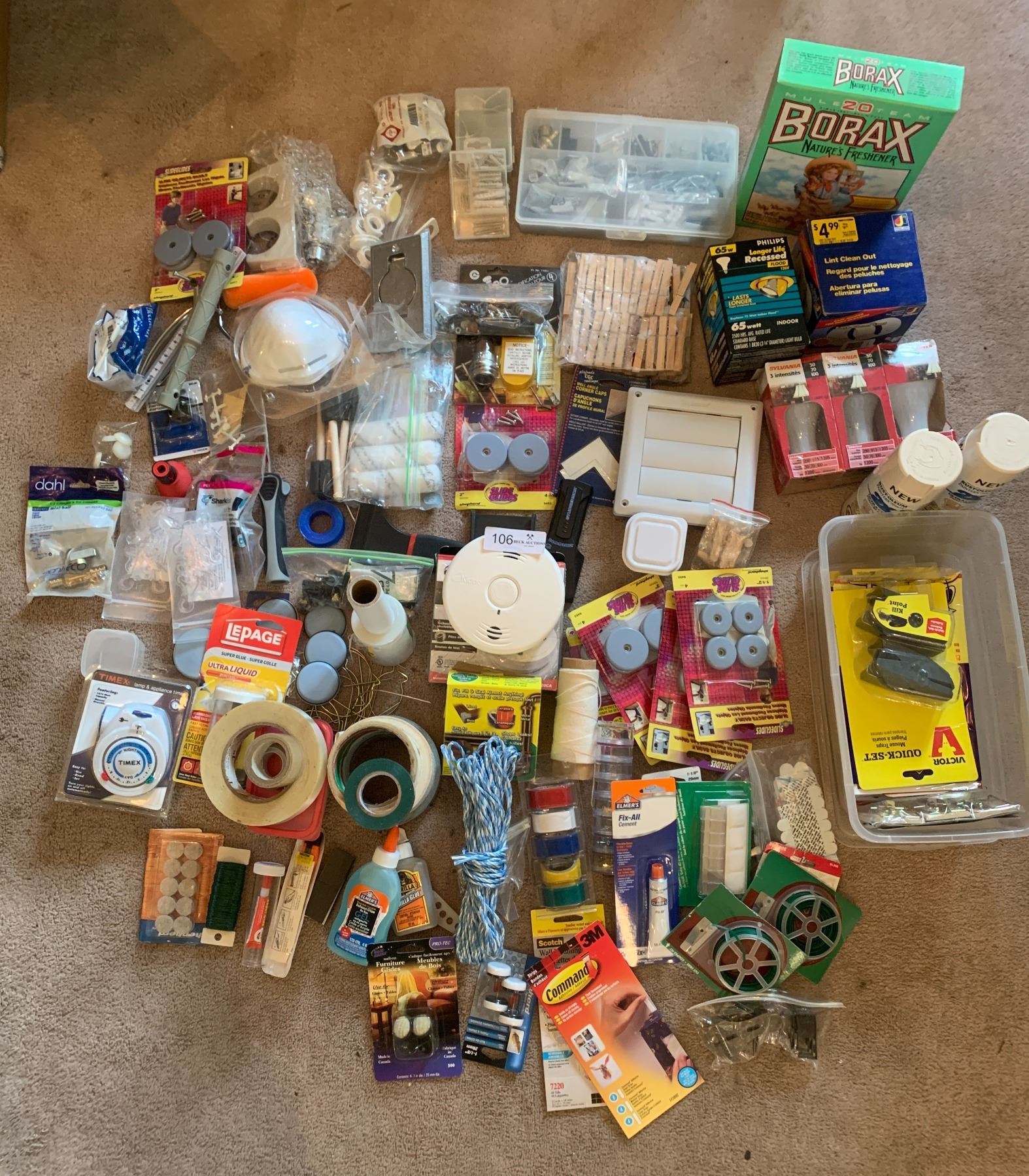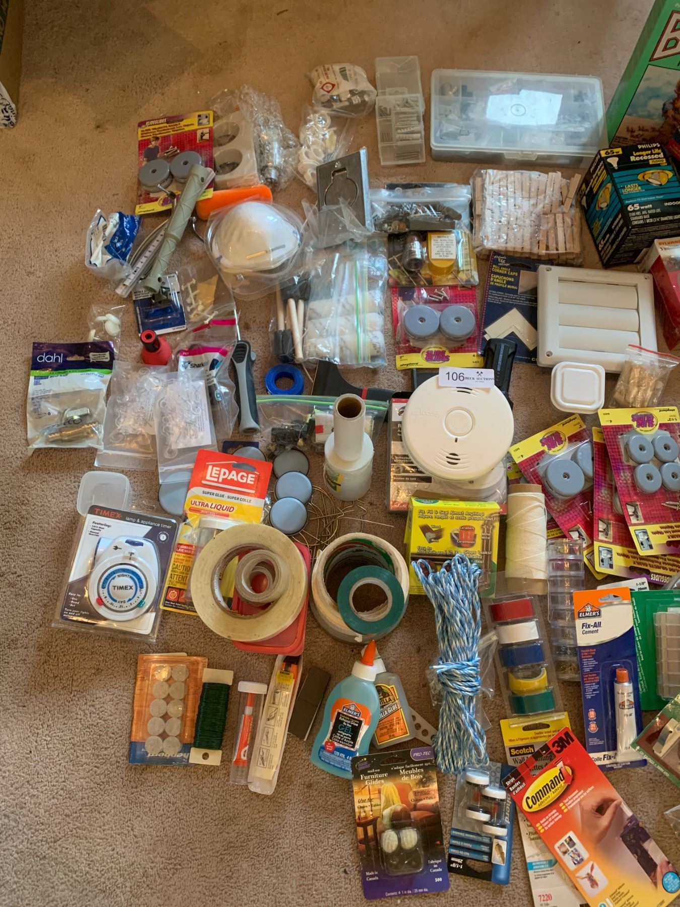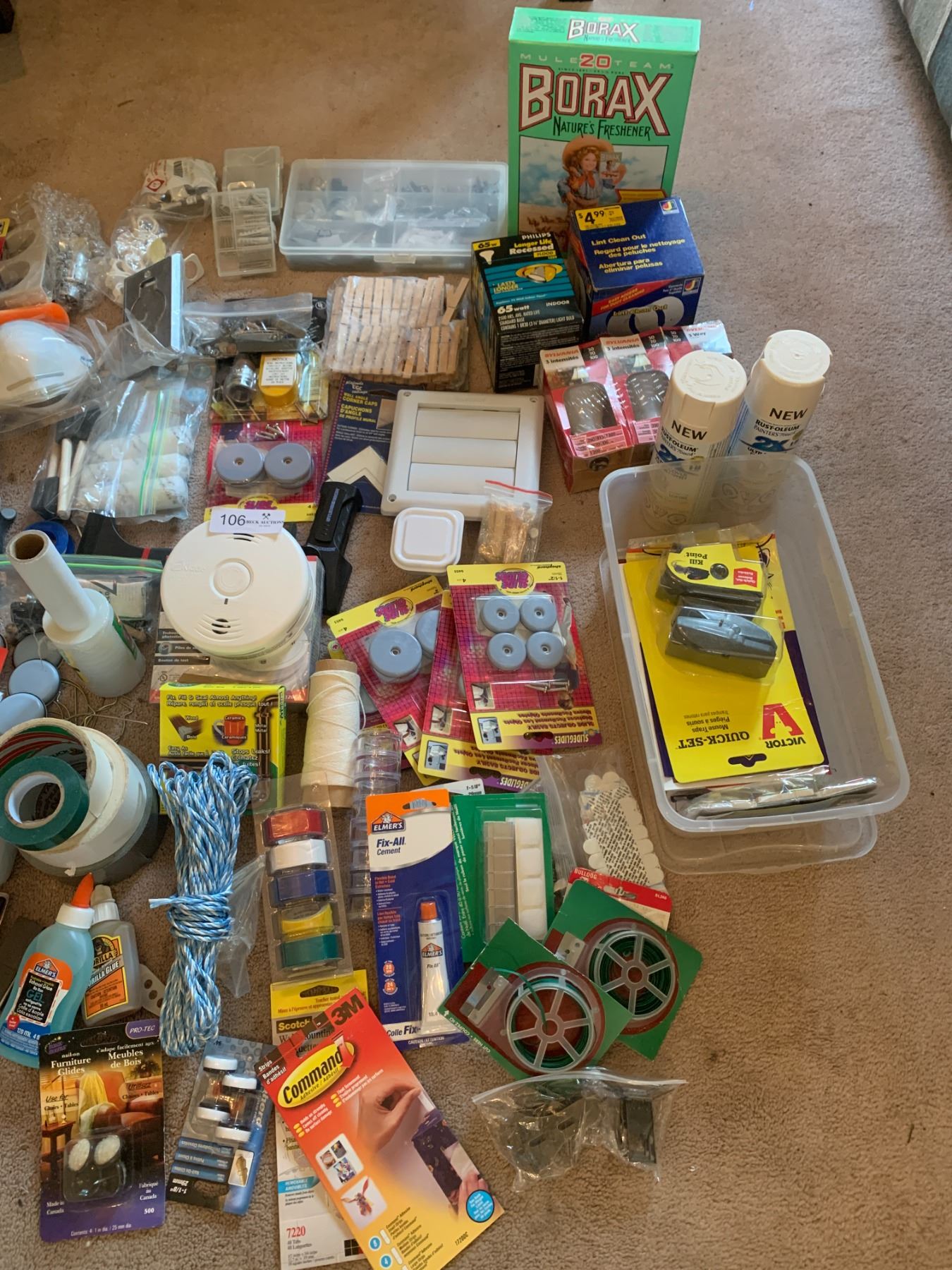 Home Improvement and Maintenance Lot. Includes rodent traps, smoke detectors, painting supplies, light bulbs, and more!