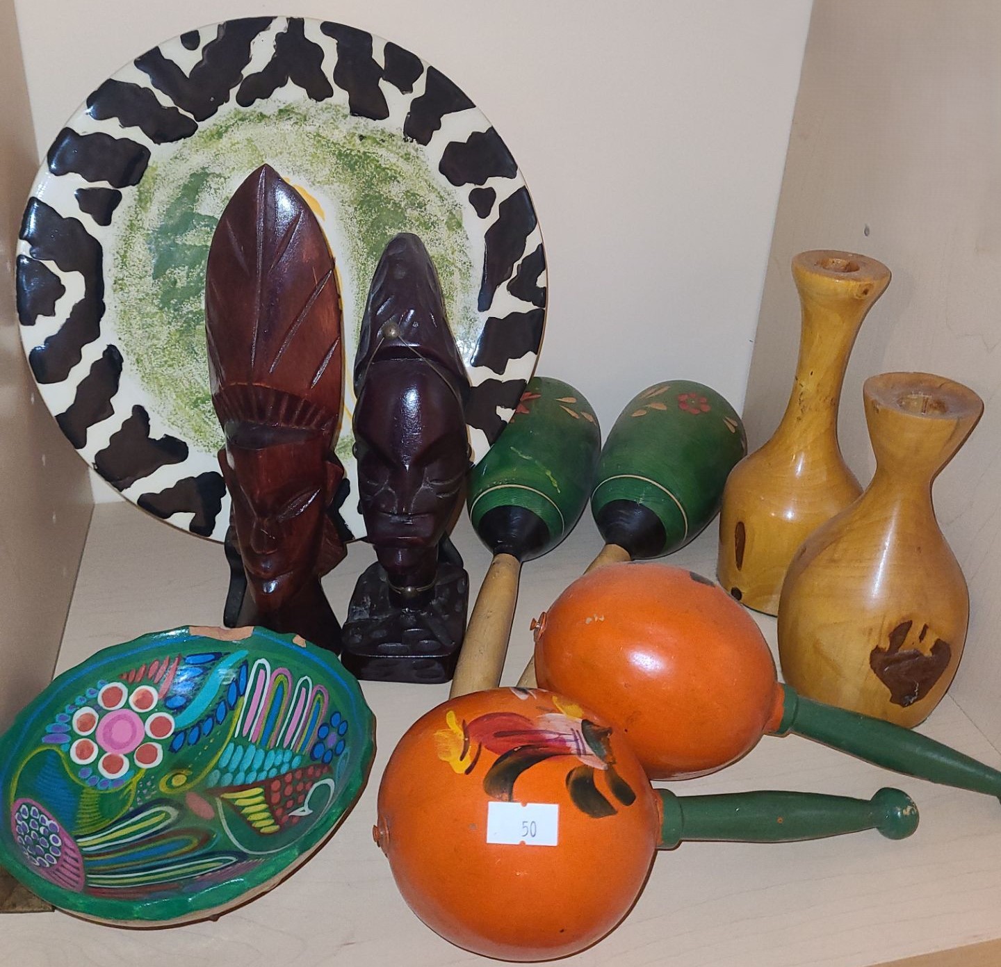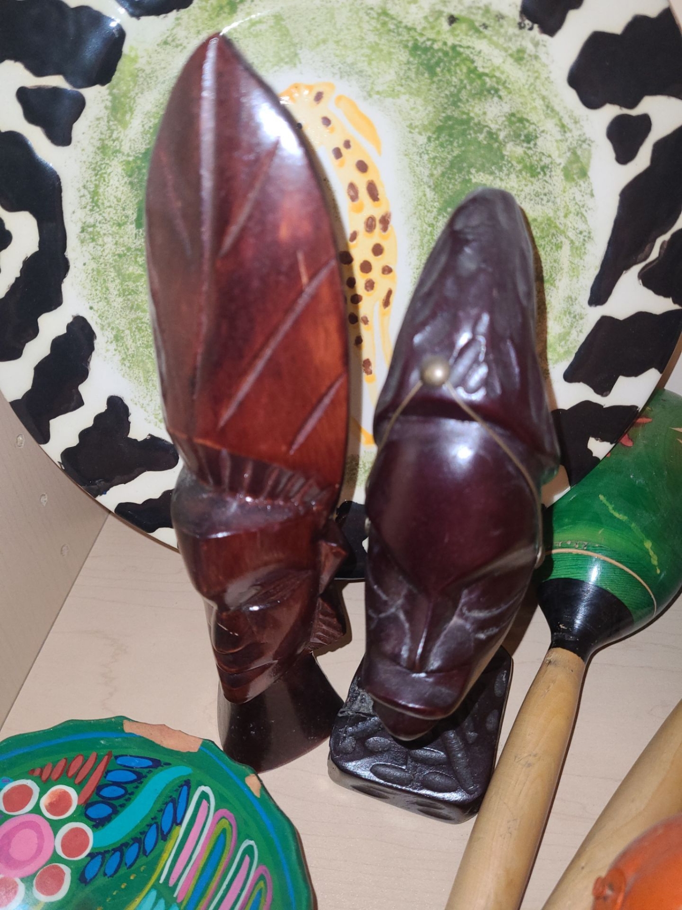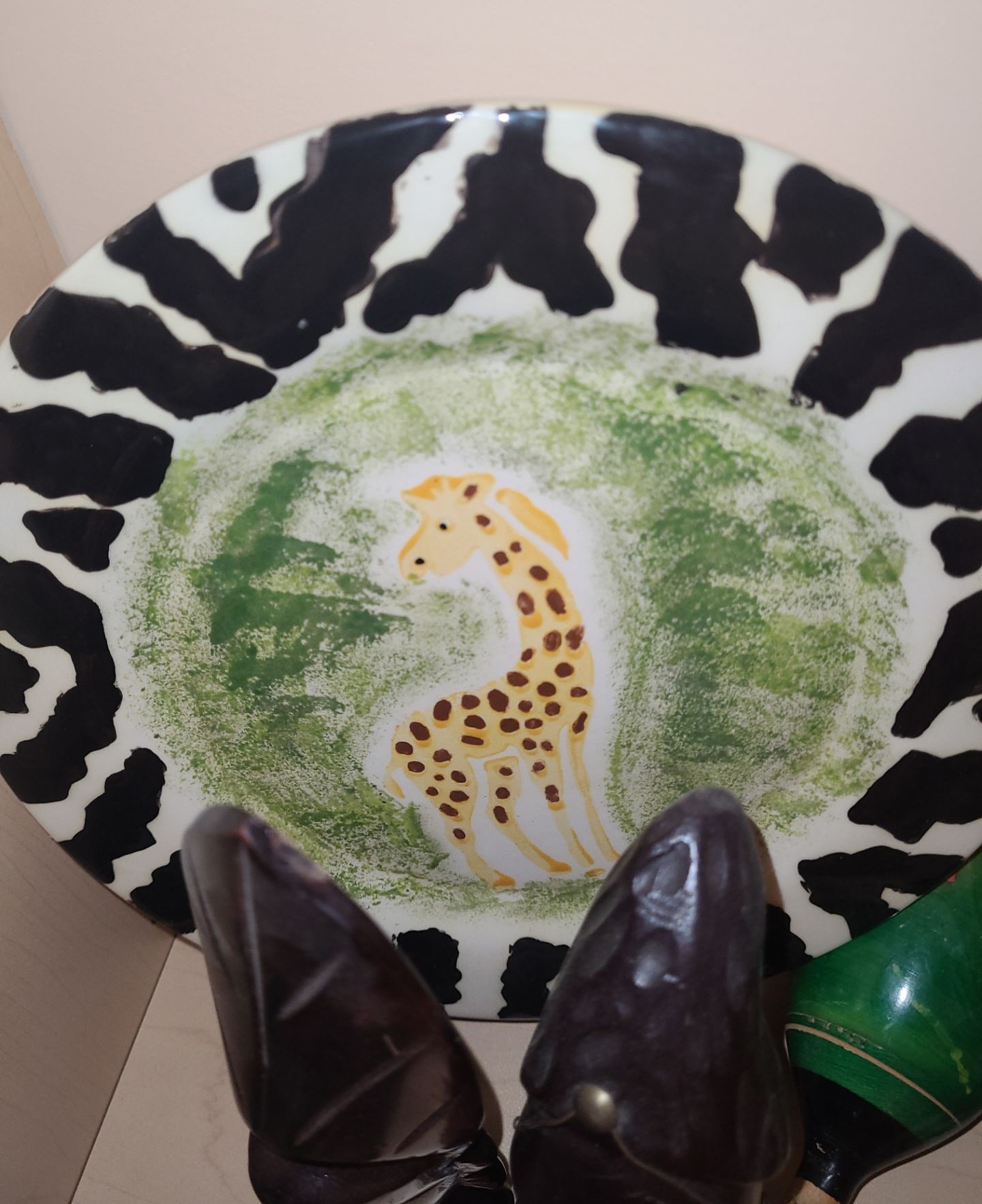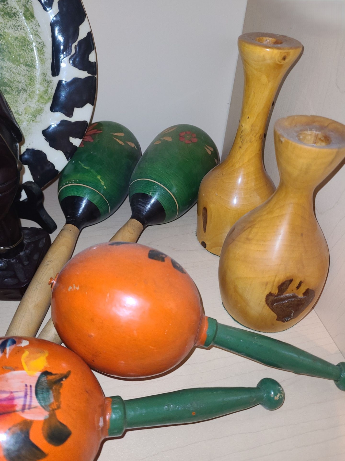 Home-Made Painted Giraffe Plate 10 Diameter, Maracas, Carved Wooden Faces and More!