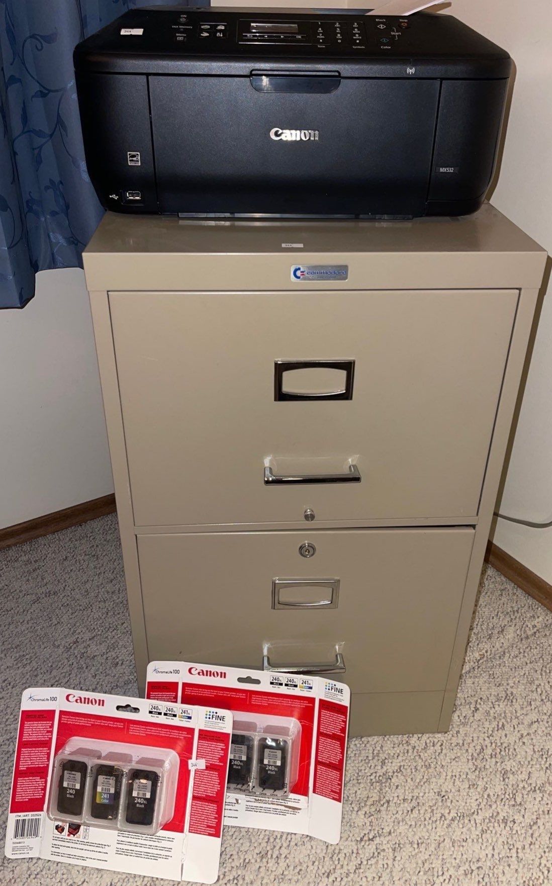 Home Office Essentials Filing Cabinet 18x24x29 w/ Canon Printer & Ink Jet Refills
