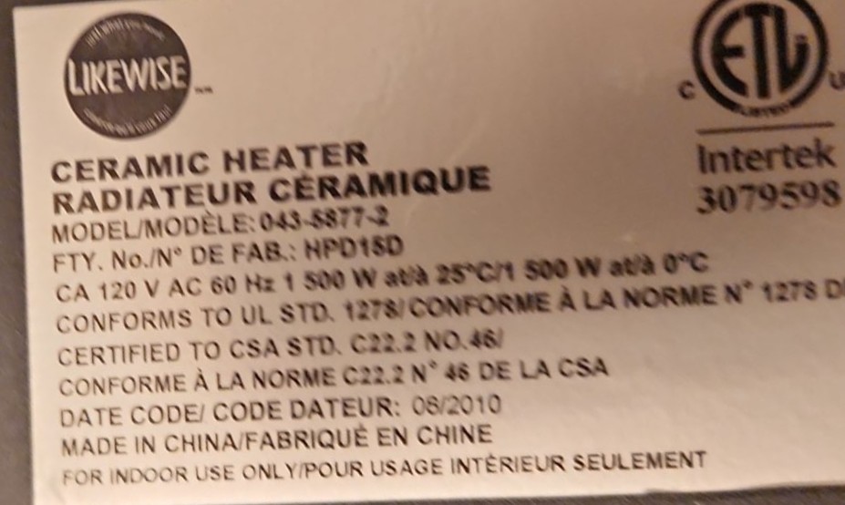 Likewise Heater Model 043-5877-2, Presto Heat Dish, Holmes Heater (Model Illegible)