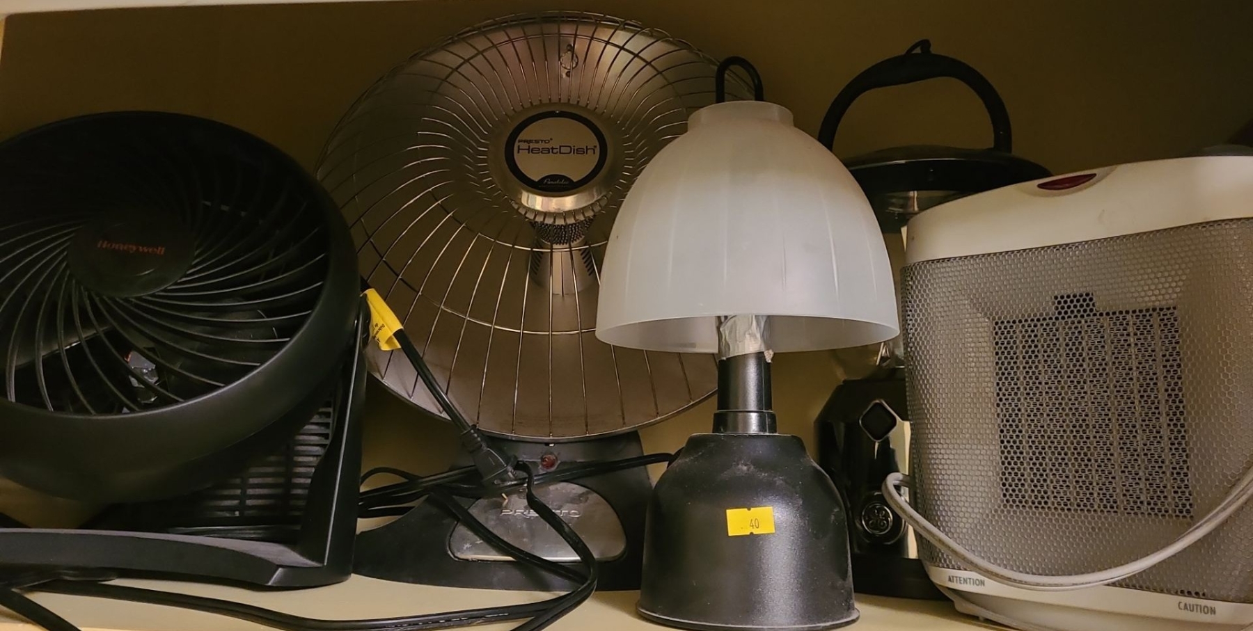 Honeywell Fan, Likewise Heater 043-5877-2, Lanterns (One by GE), Presto Heat Dish, Holmes Heater