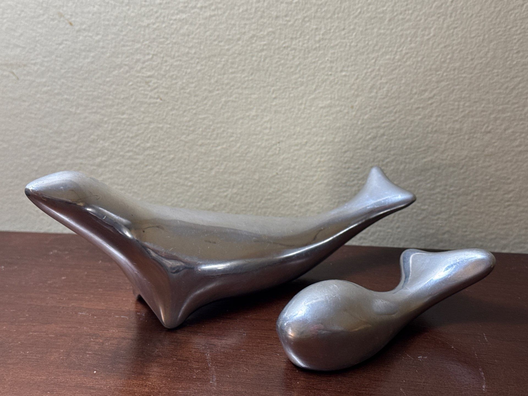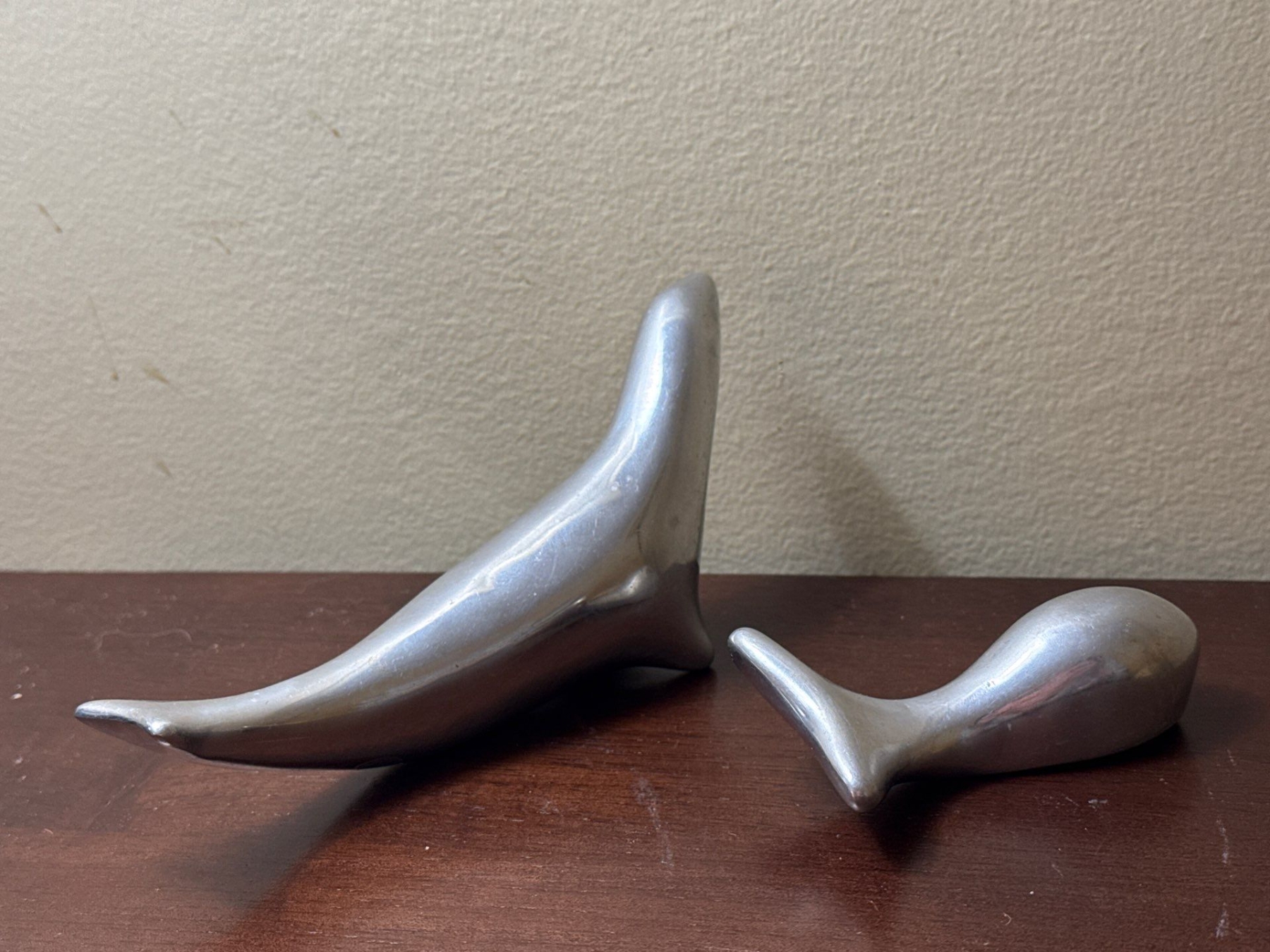 Hoselton Aluminum Art Sculptures, Made in Canada - Seal (7 Long) & Small Whale