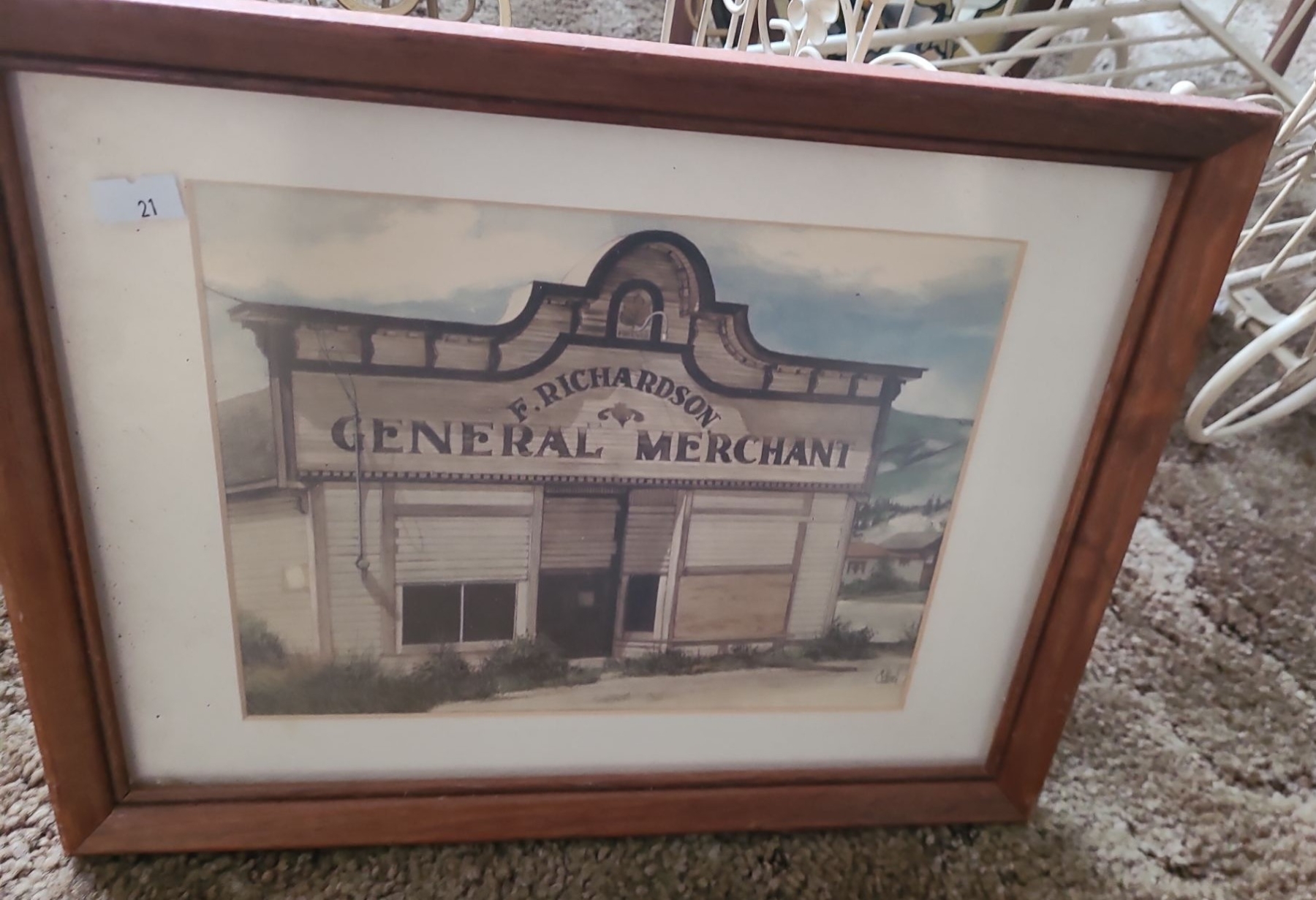 Building Pictures are Prints Only, Stool with Green Top is a Sewing Box