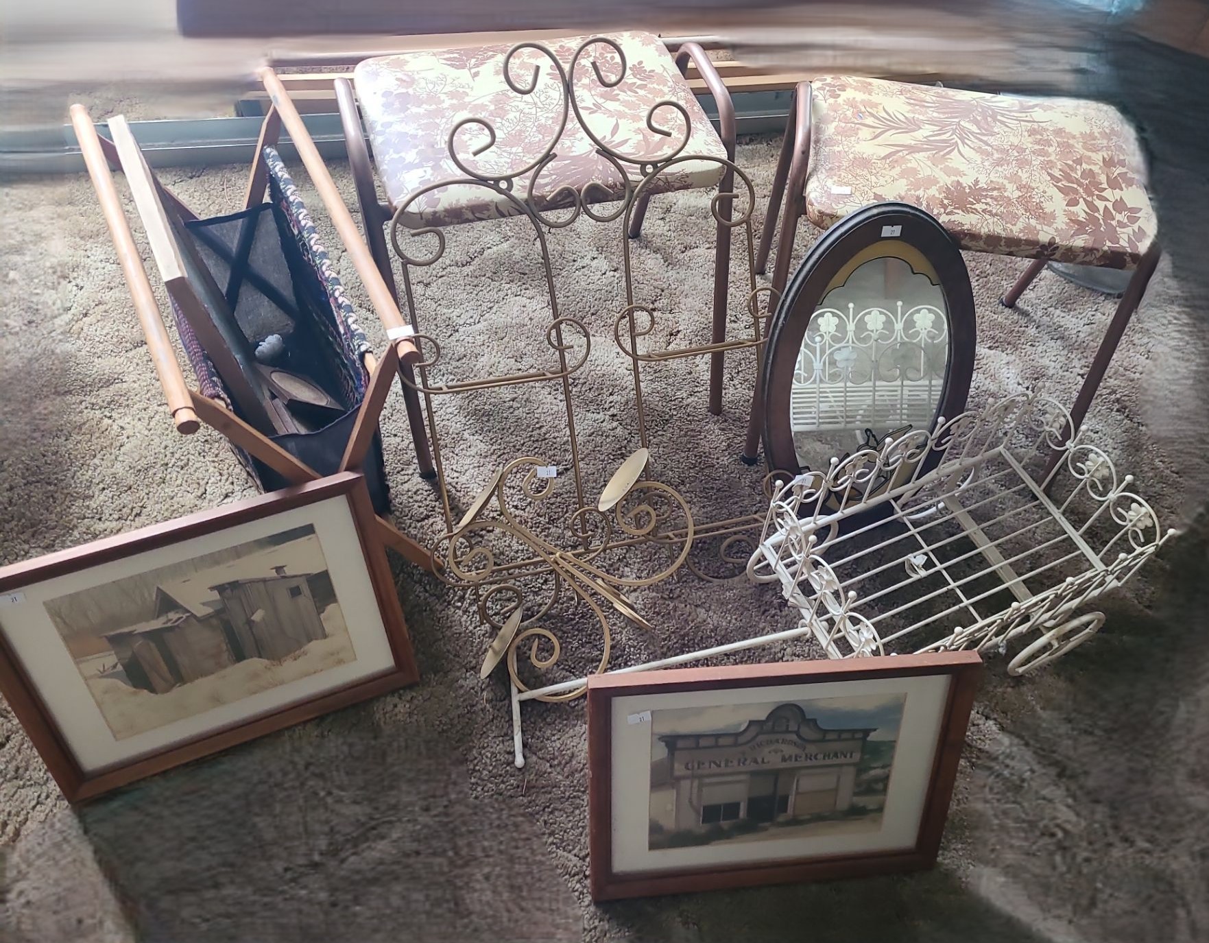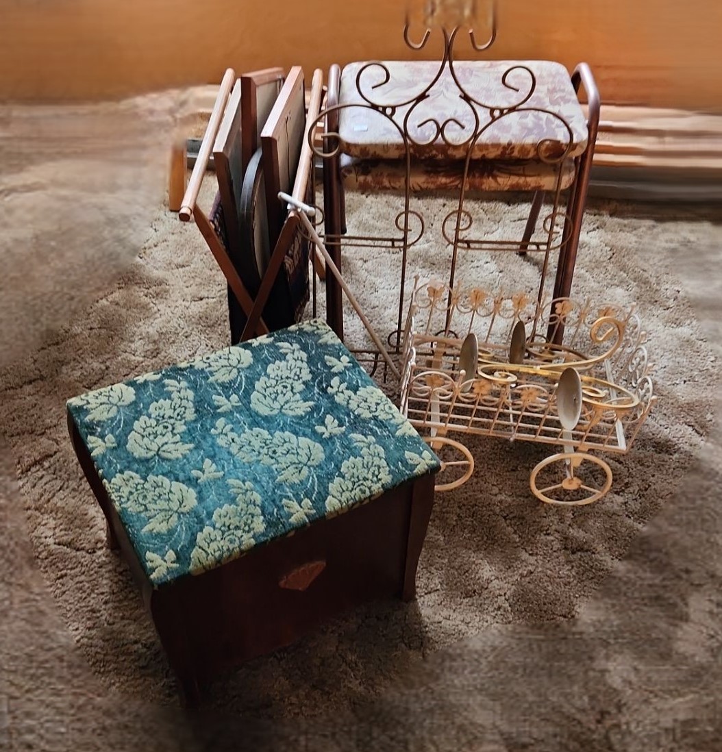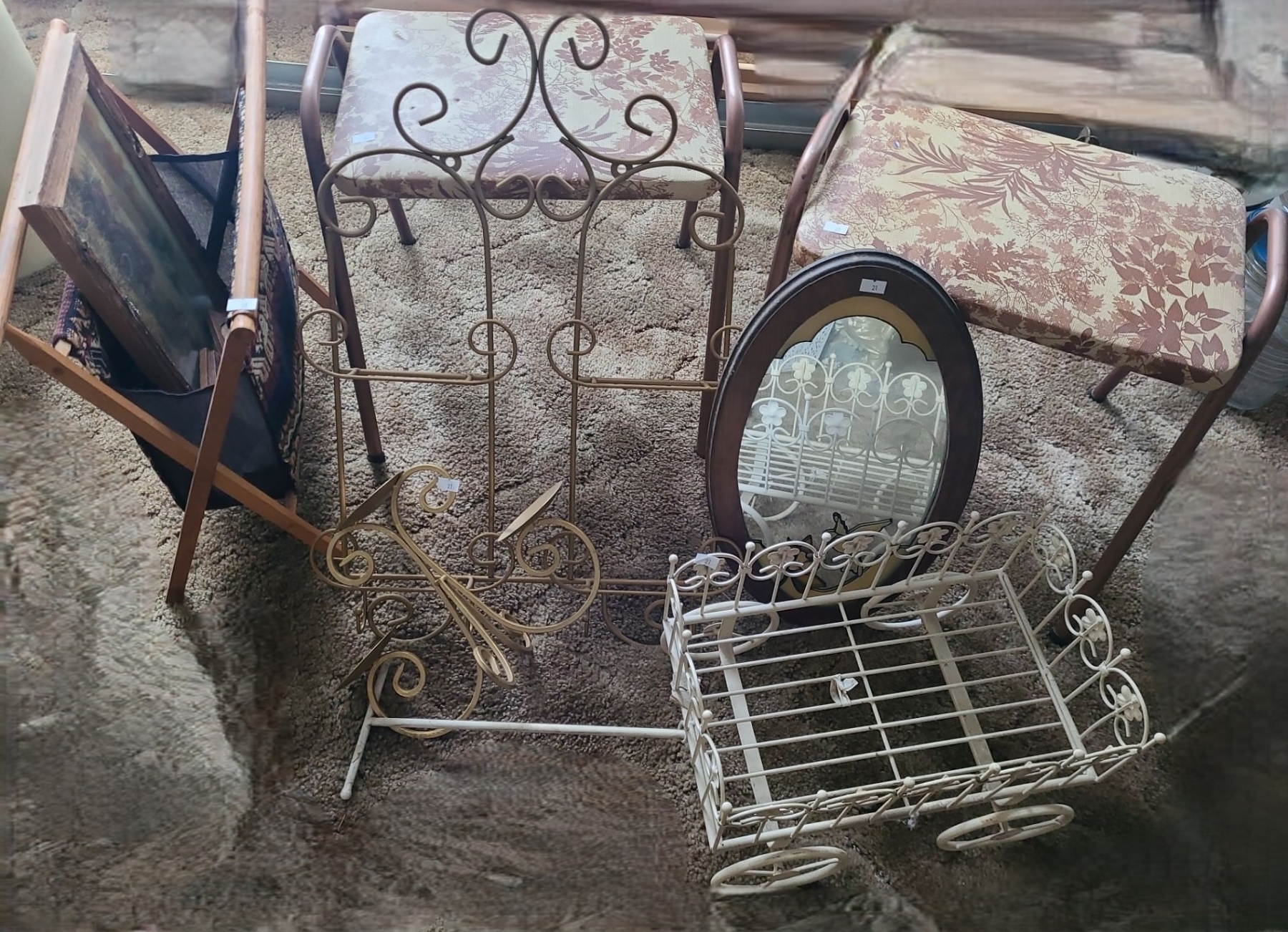 Household Items Including Stool: 17 W, 12 D, 18 T, Decor Wagon, Magazine Holder, Mirror, and More!
