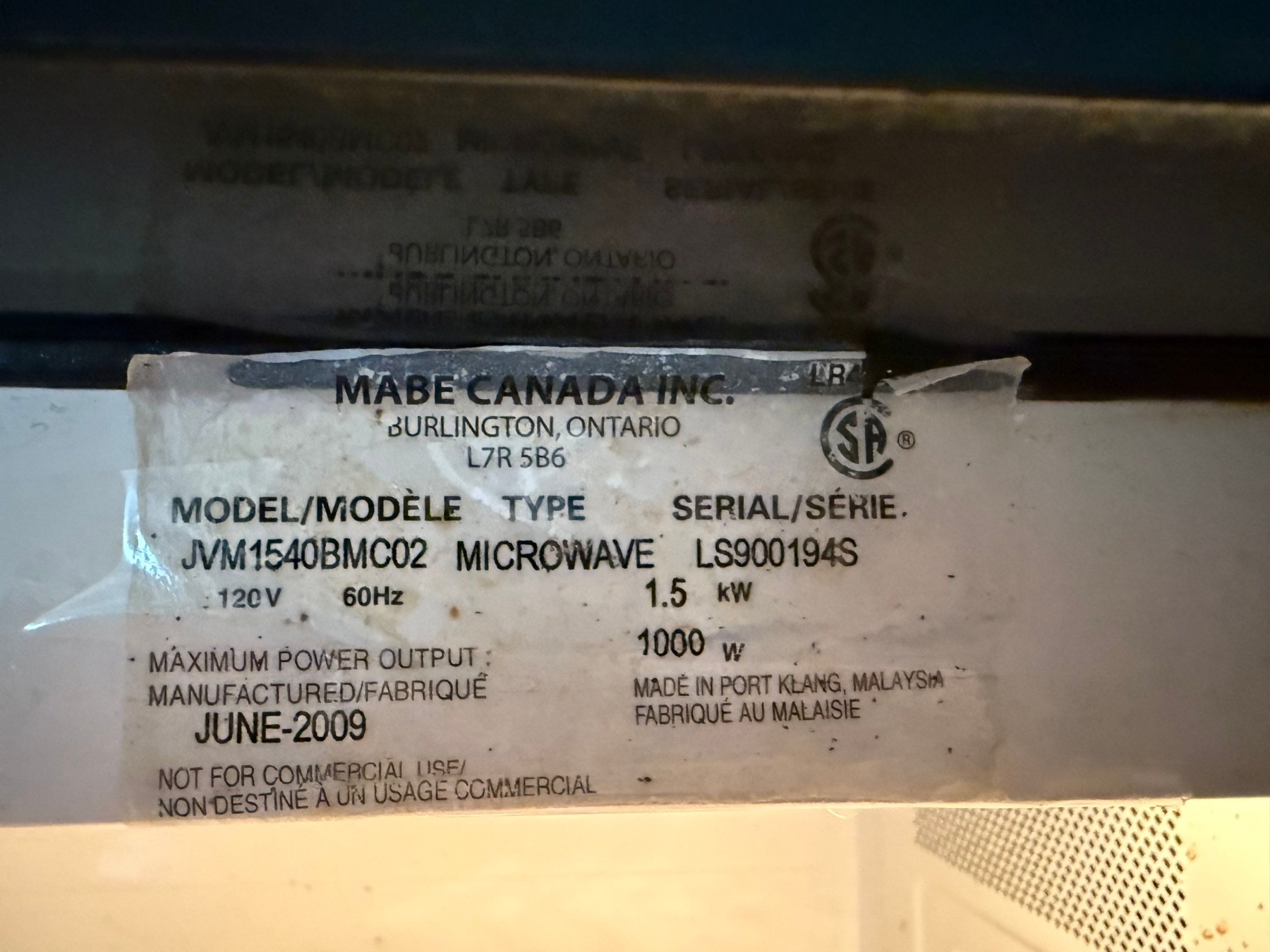 Household Under Counter General Electric Black Microwave Model# JVM1540BMCO2
