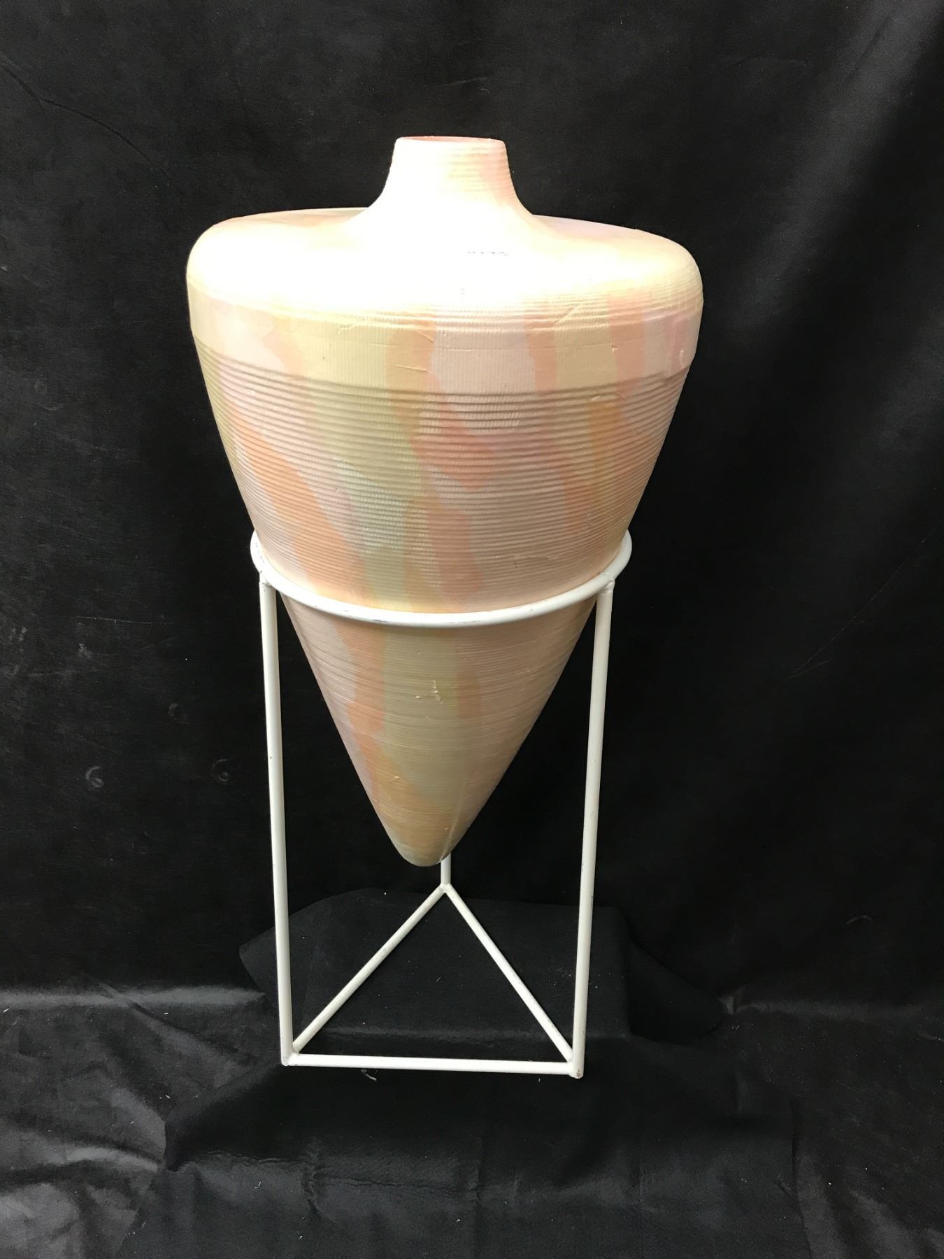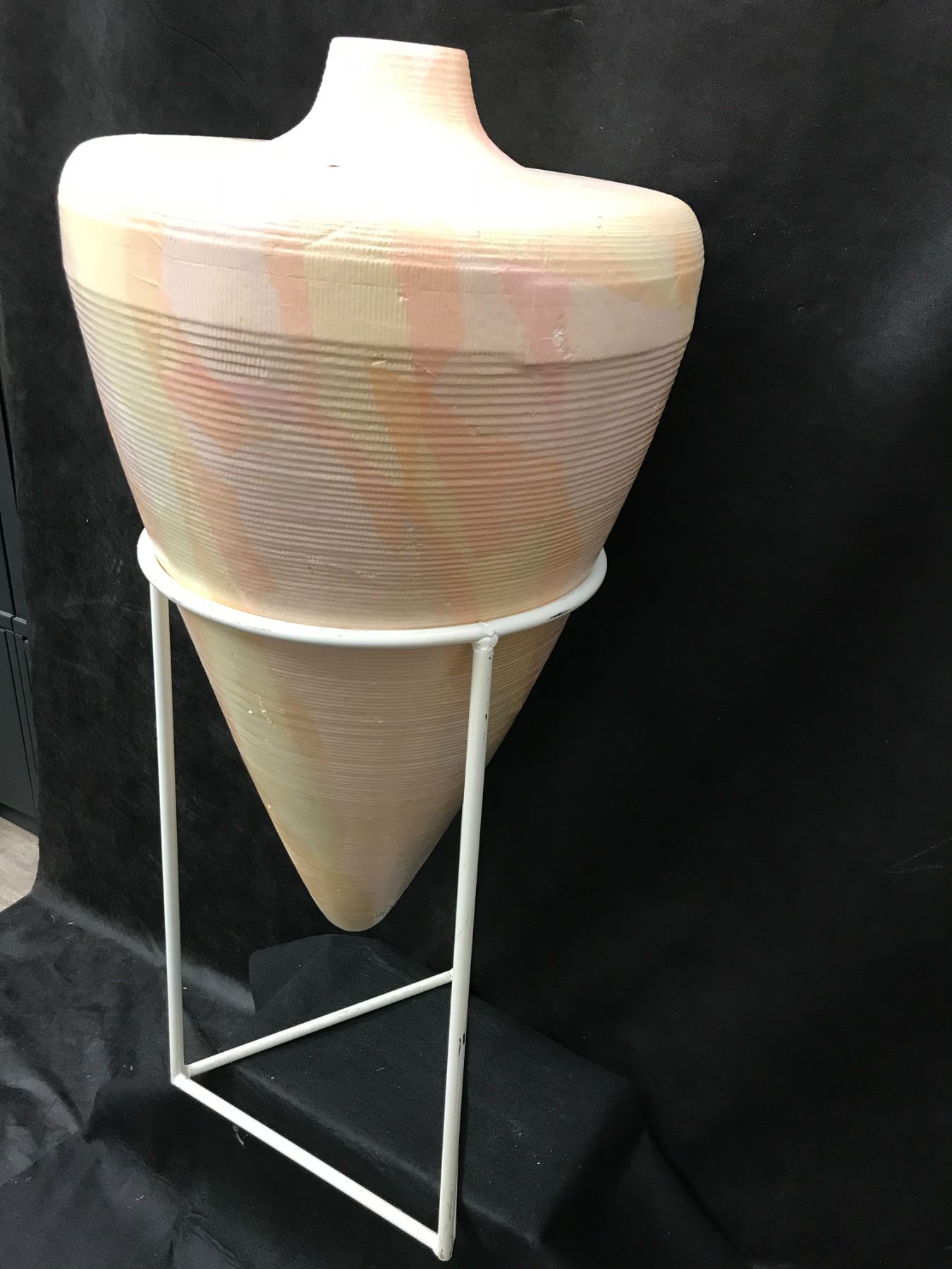 Huge Spun Cardboard & Tissue Paper Vase with Metal Stand