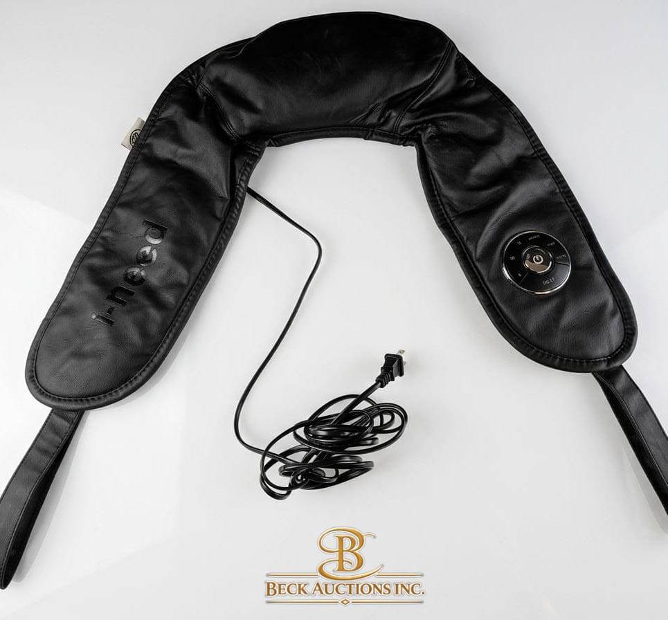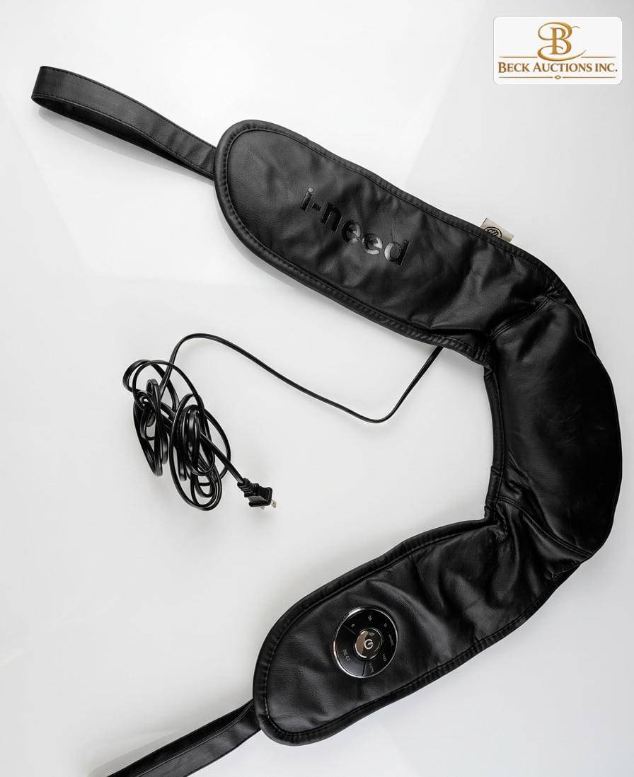 This i-Need massaging neck and shoulder device offers targeted relaxation and comfort. Designed in a compact and ergonomic shape, it measures approximately 29 in length and 7 in width at its widest section, fitting comfortably around the user’s neck and shoulders. It includes a connected power cord, ensuring you can plug in and enjoy its features seamlessly. Whether for personal use or as a gift, its design and functionality cater to relaxation needs.