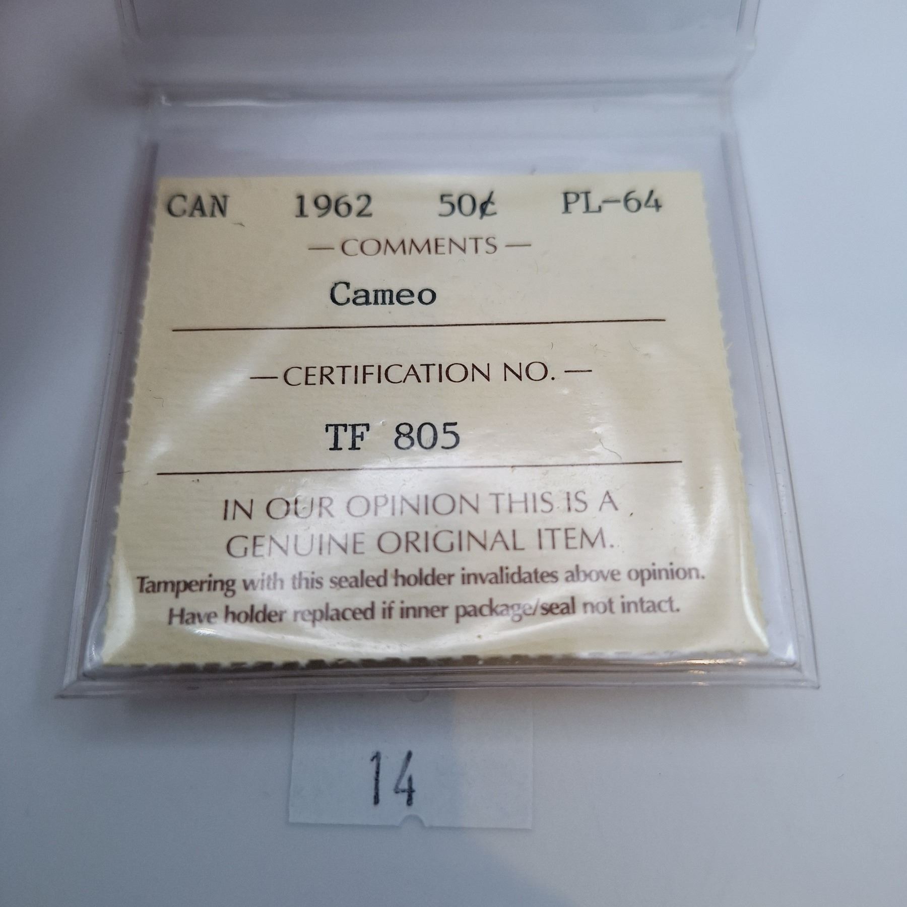 ICCS Graded PL-64 1962 50 Cent Canadian 80% Silver Coin