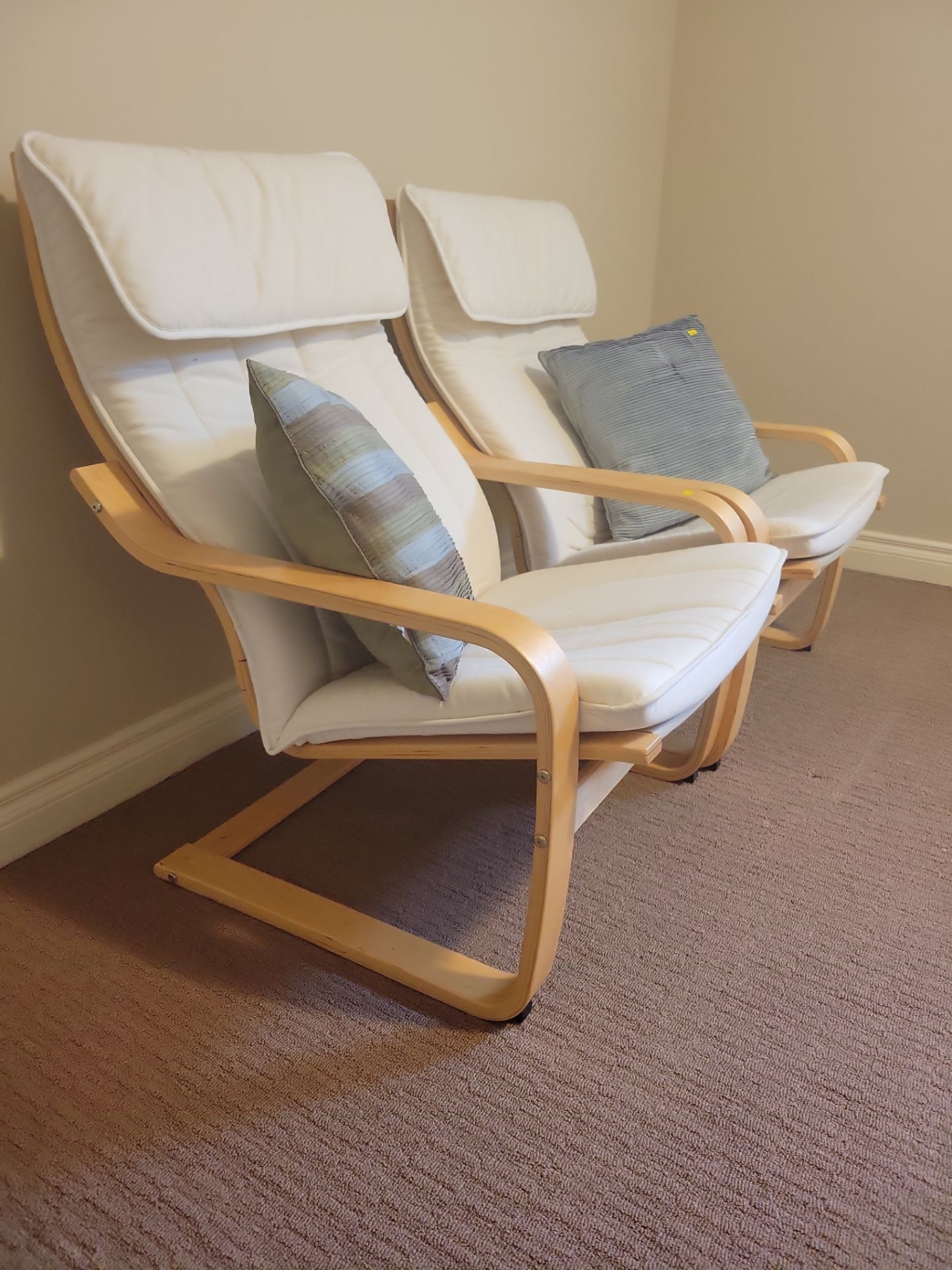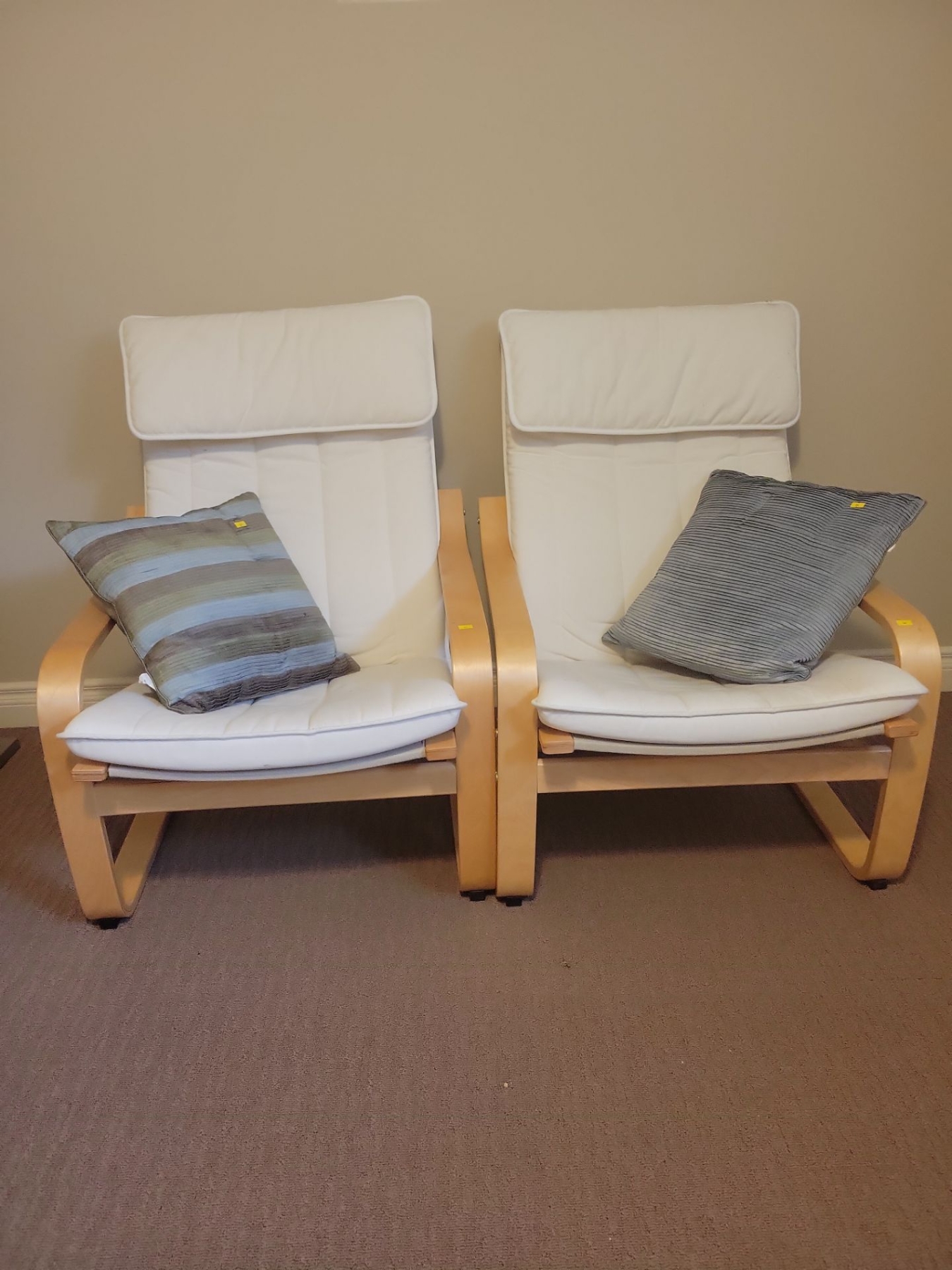 IKEA Poang Arm Chairs w/ Peacock Colored Pillows 36T