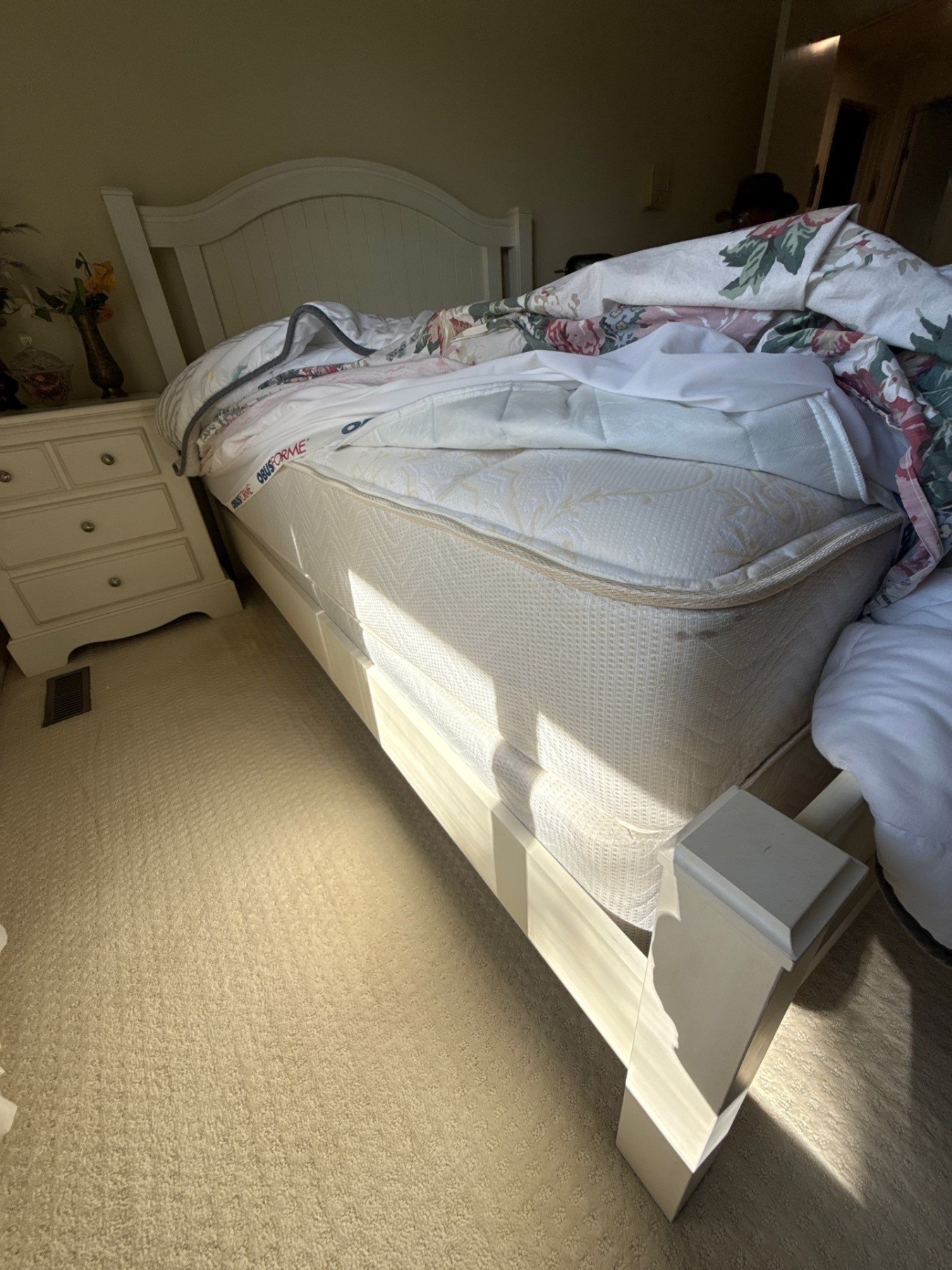 Ikea White Wood Queen Bed & Mattress