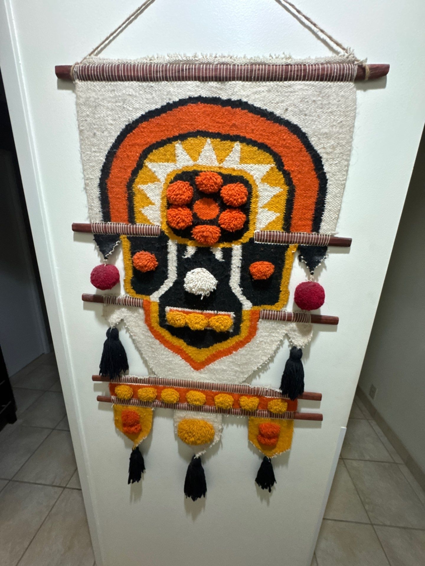 Indian Folk Art Wool Wall Hanging Textile 24W x 44T