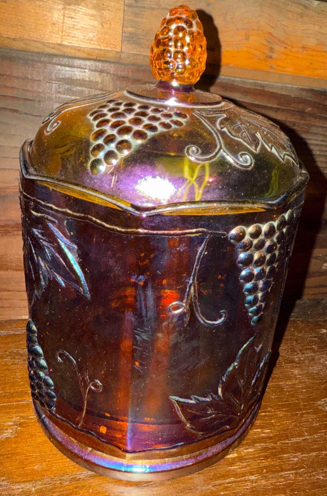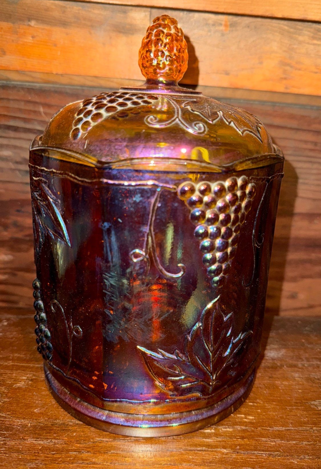 Indiana Carnival Glass Harvest Grape Cannister Jar - Contemporary Carnival Glass