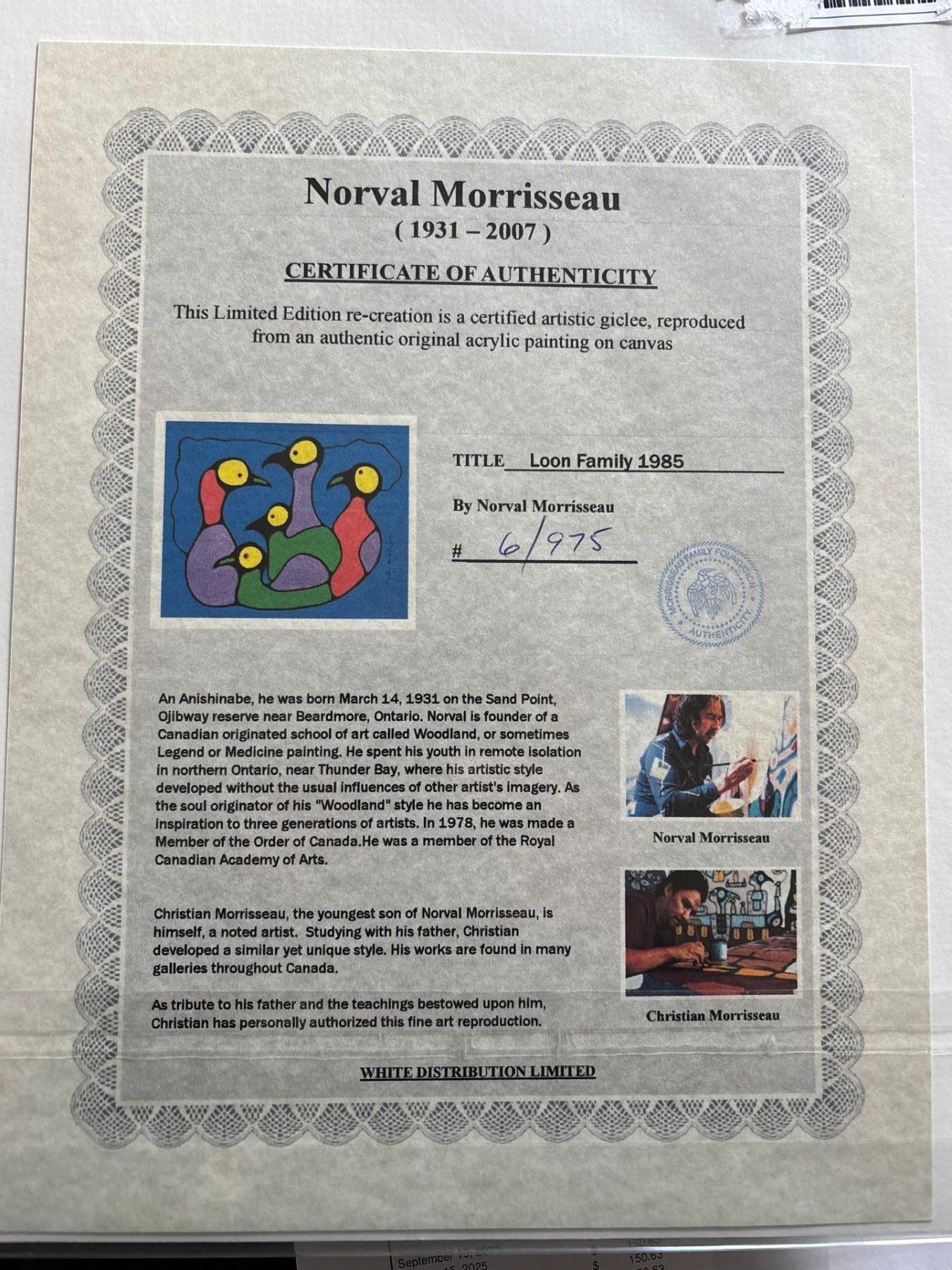 Indigenous artist Norval Morisseau limited edition with certificate Loon Family 1985