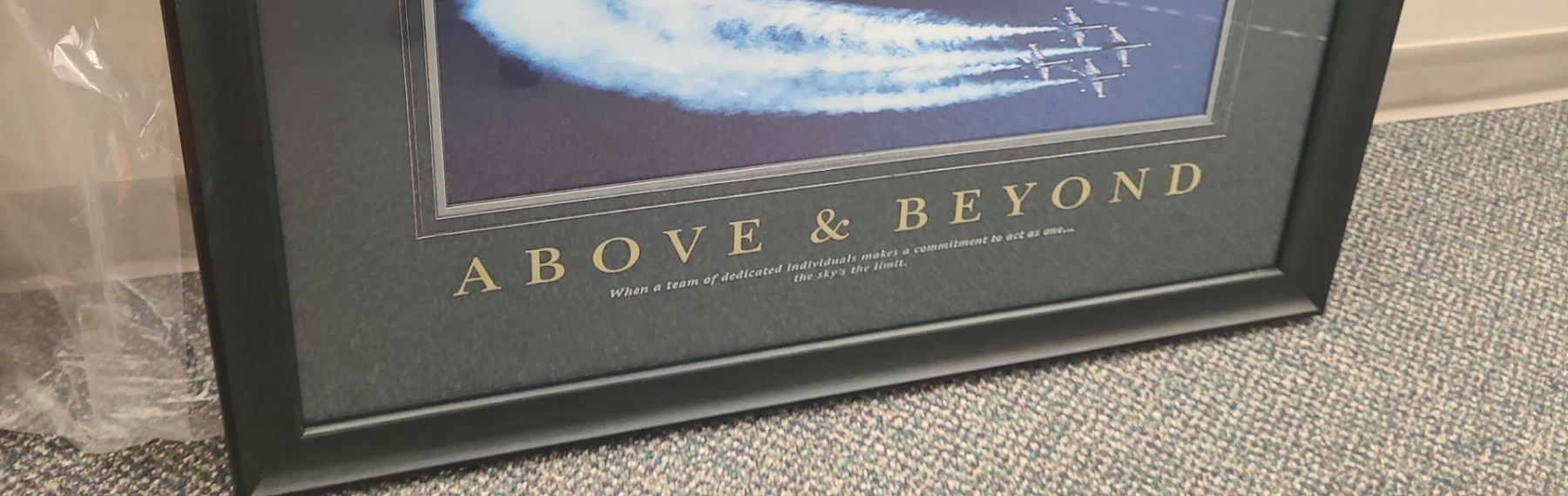 Inspirational Print 33 X 27 "Above and Beyond", Framed Under Glass