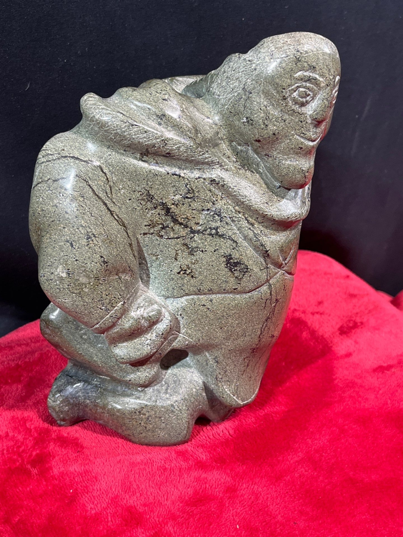 Inuit Elder Soapstone Carving 6Wx8H T-TAR