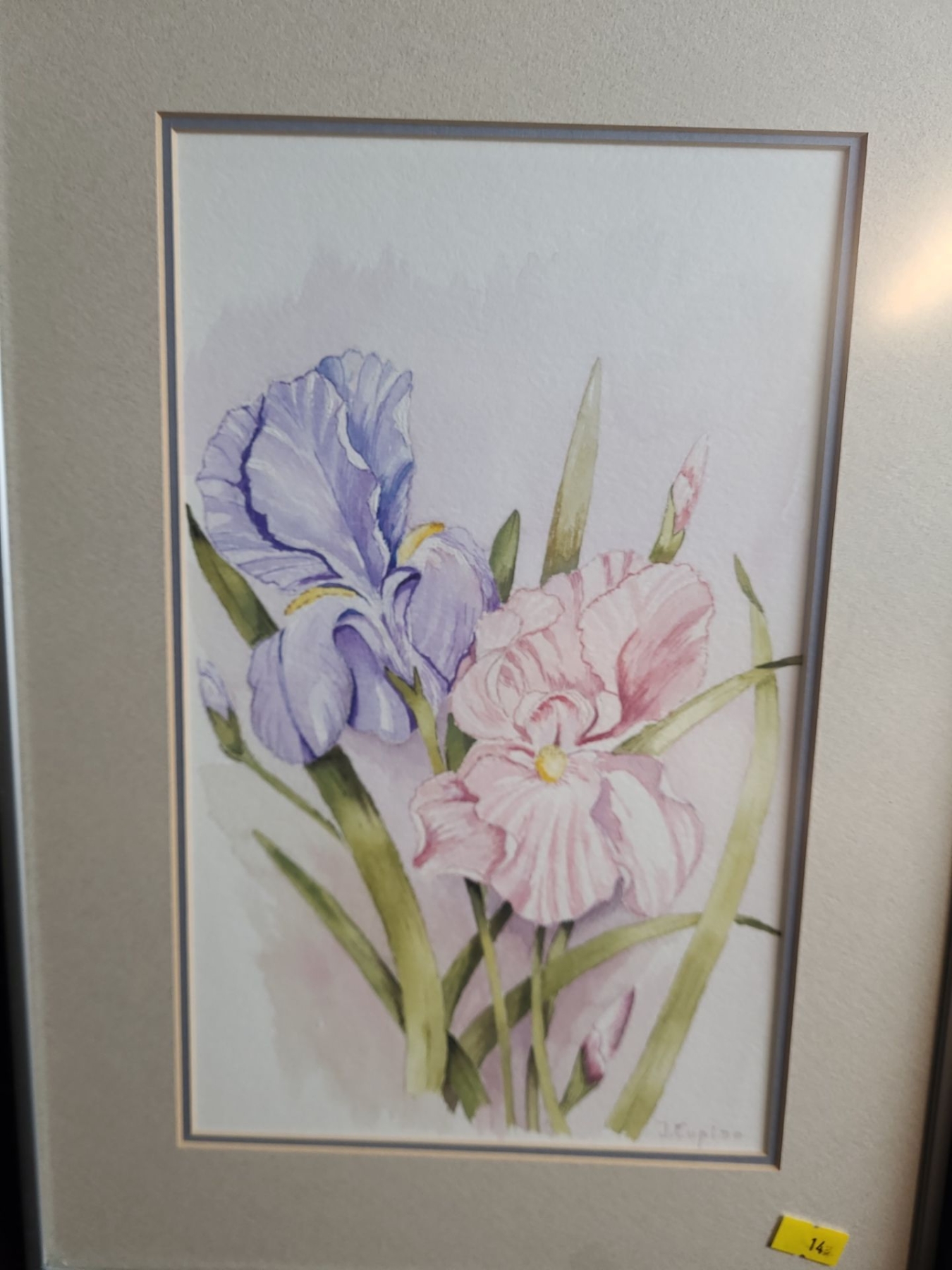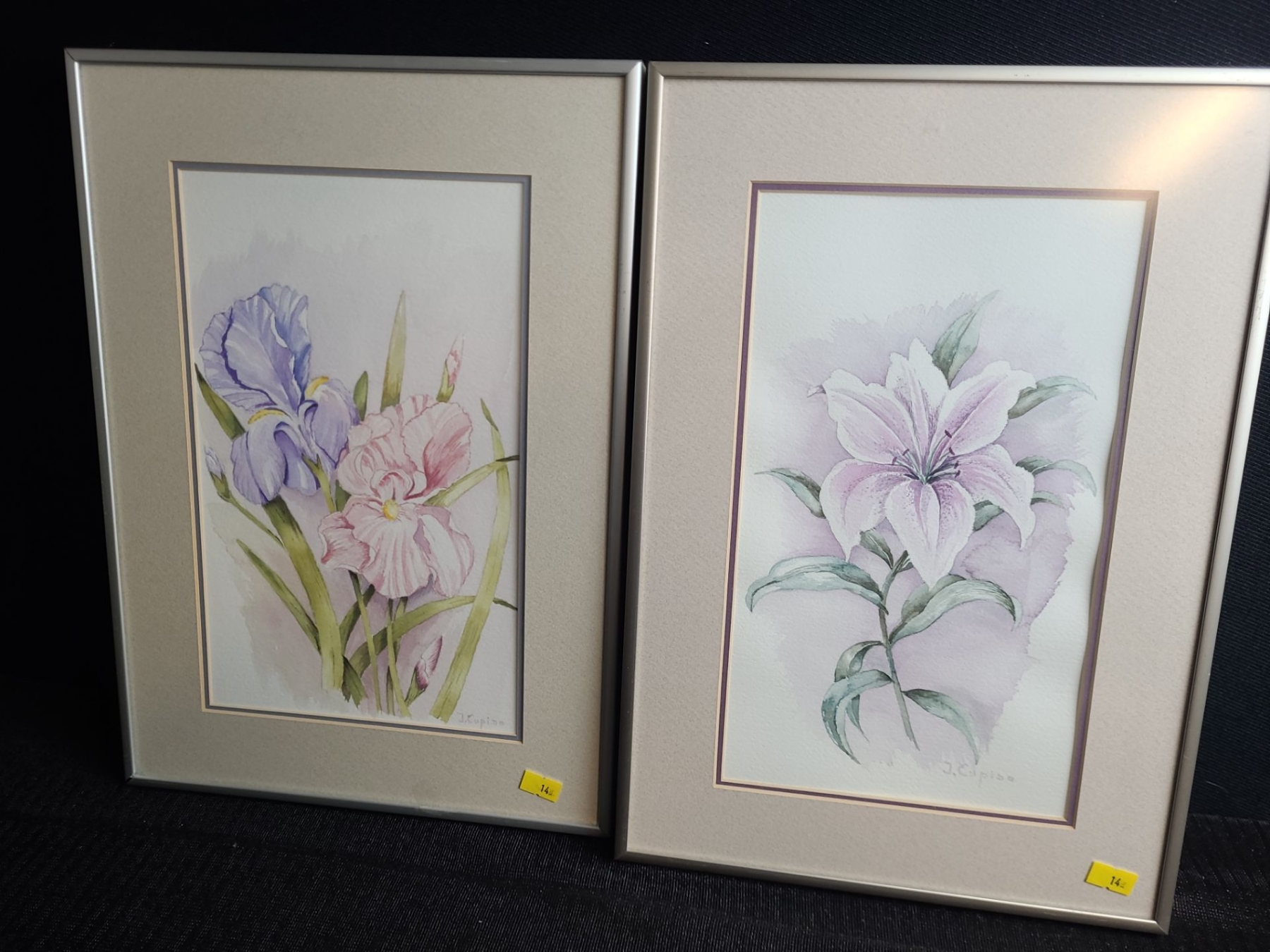Iris and Lilly Paintings, Artist: J. Cupido, Framed Under Glass, 11 X 16