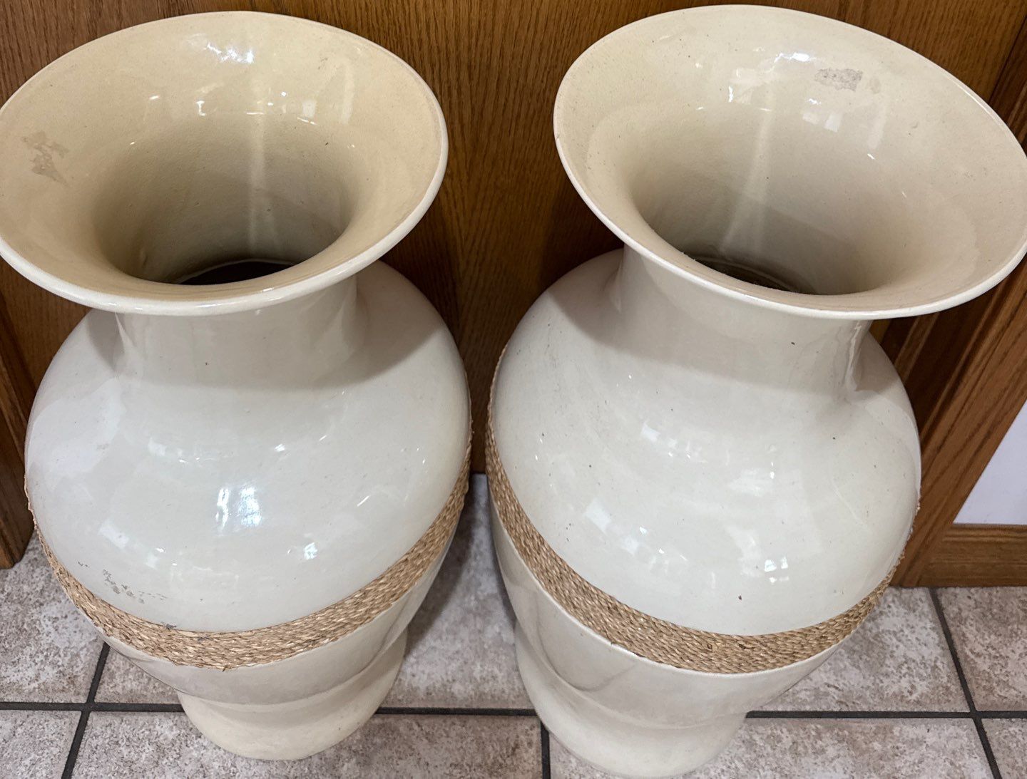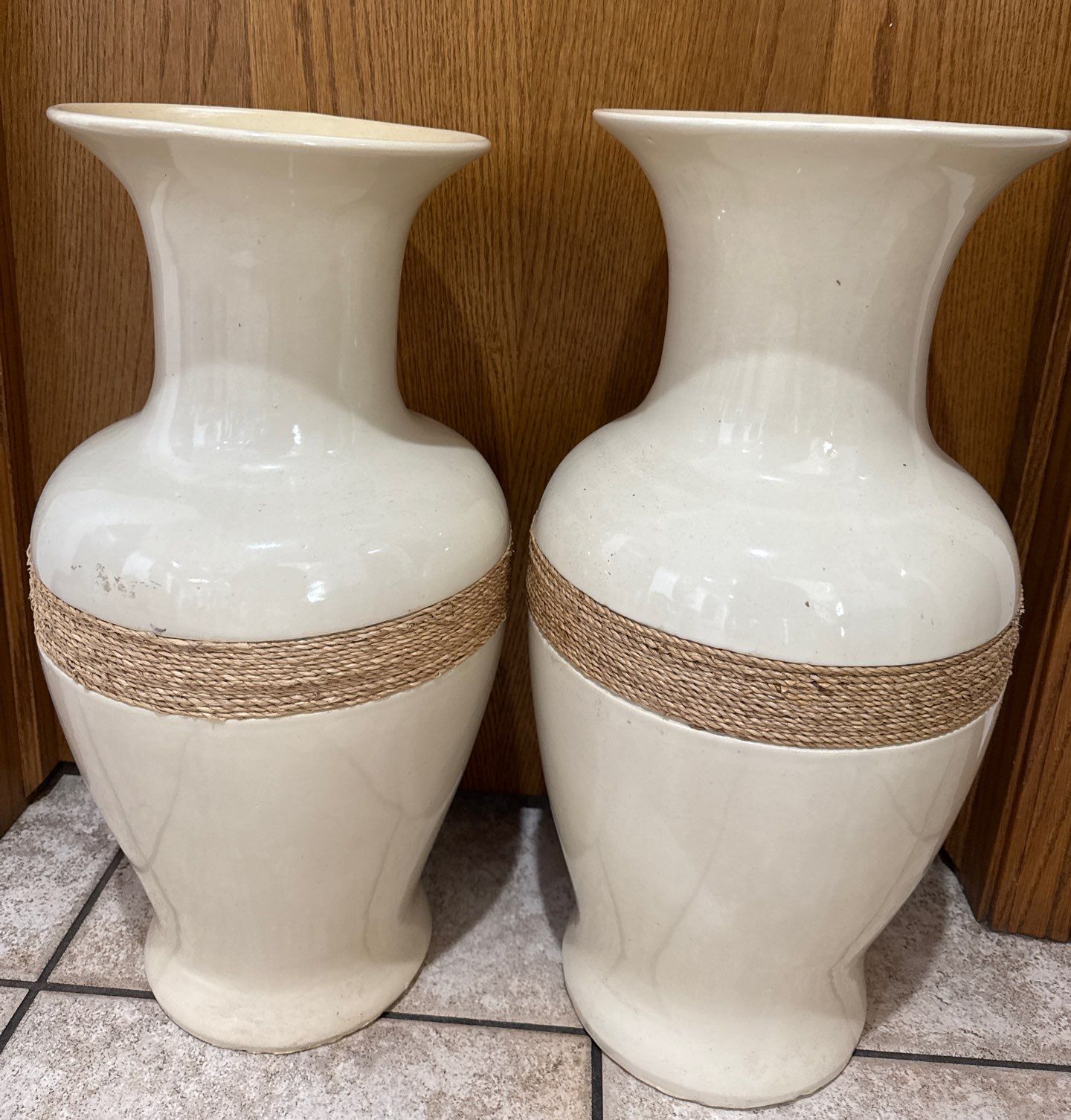Ivory Ceramic Vase Pairing w/ Jute Accents 19T