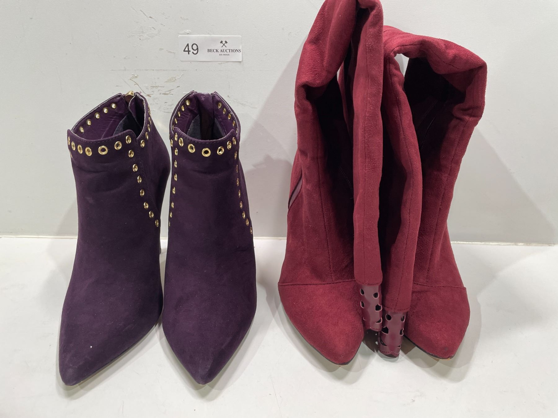 Izabella Rue Purple Suede Ankle Cut Boots And Madison ShoeDazzle Suede Knee high Boots Both Womens7