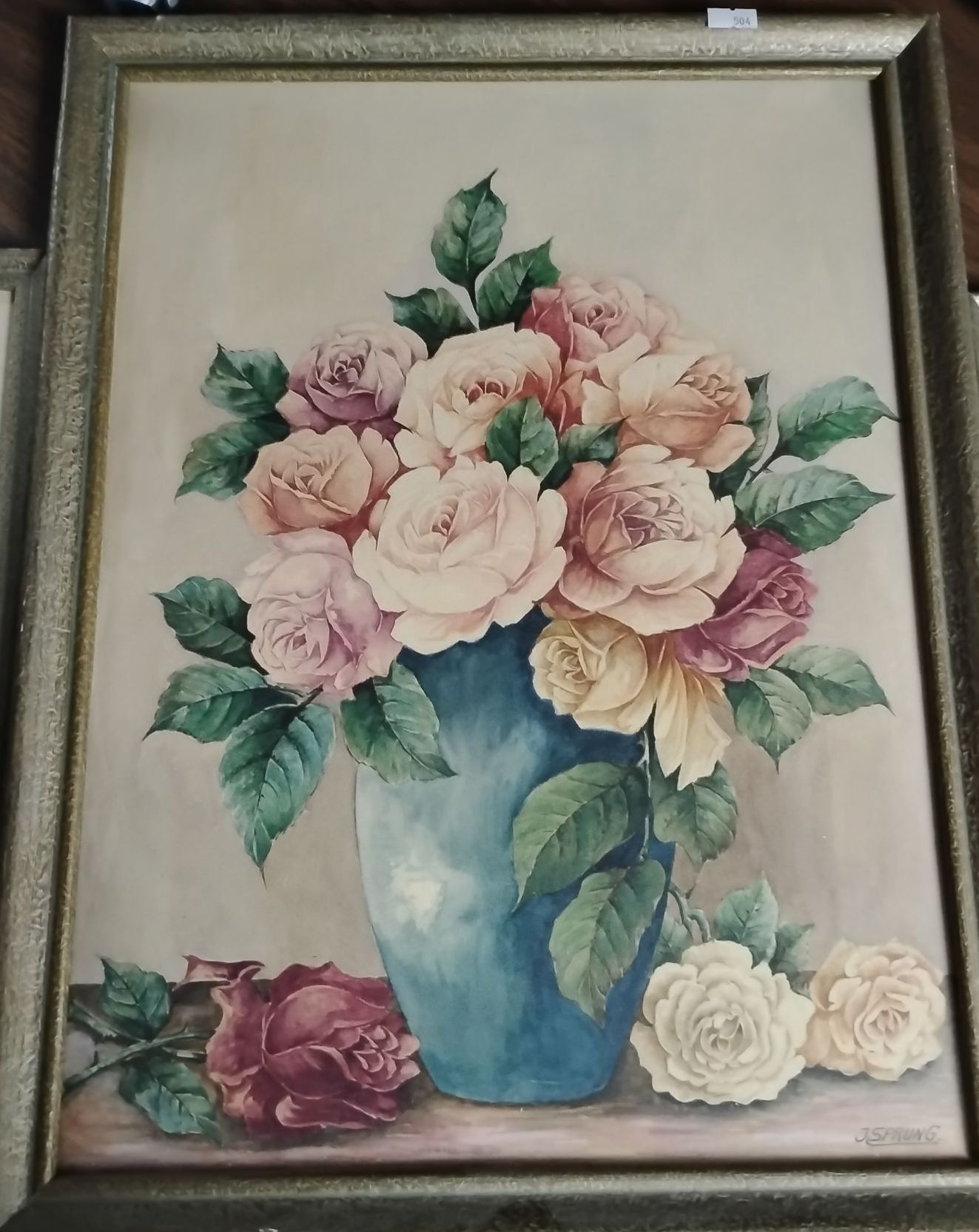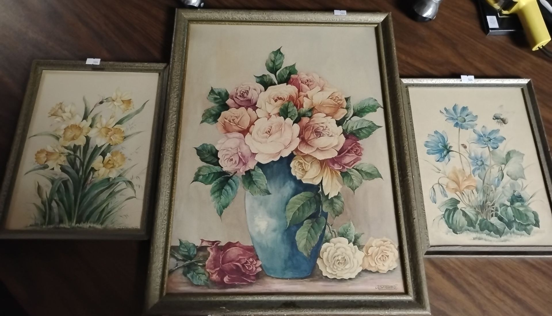 J. Sprung Oil on Board Floral Art 3 Pieces 24x32