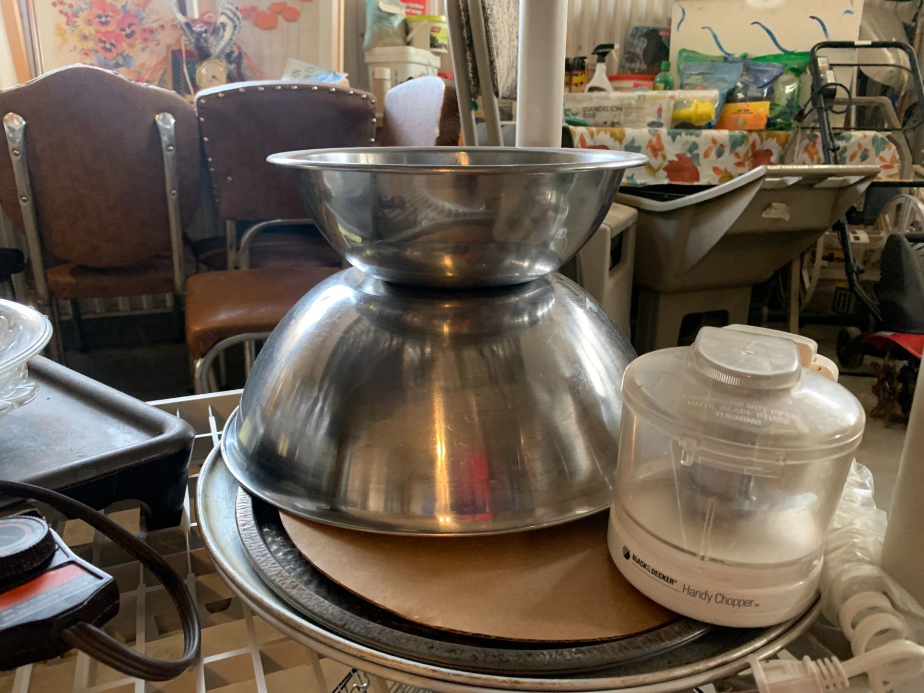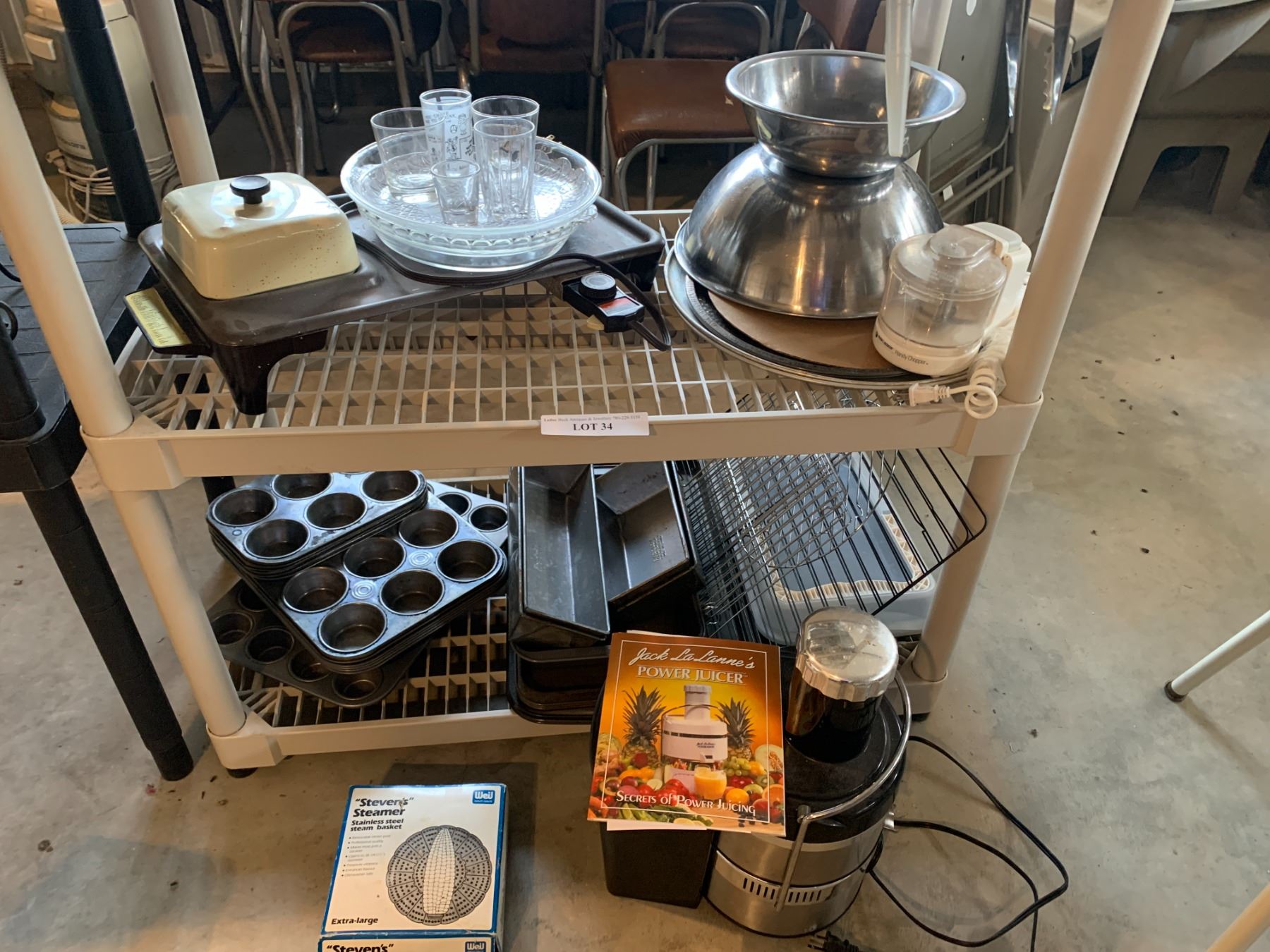 Jack La Lanne's Power Juicer, Black & Decker Handy Chopper, Jubilee Breakfast Grill, Steam Basket, Cookie, Cake & Muffin Tins, Cookie Trays, Bowls, Plates, Glasses etc