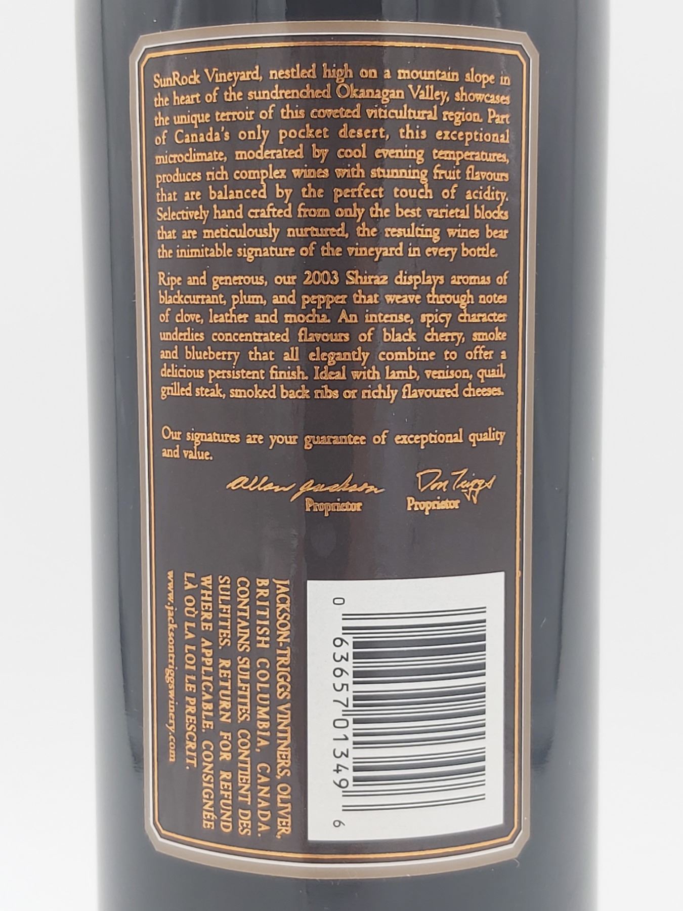 Jackson Triggs Okanagan Valley Estate Sun Rock Vineyard Shiraz 2003 14.6%