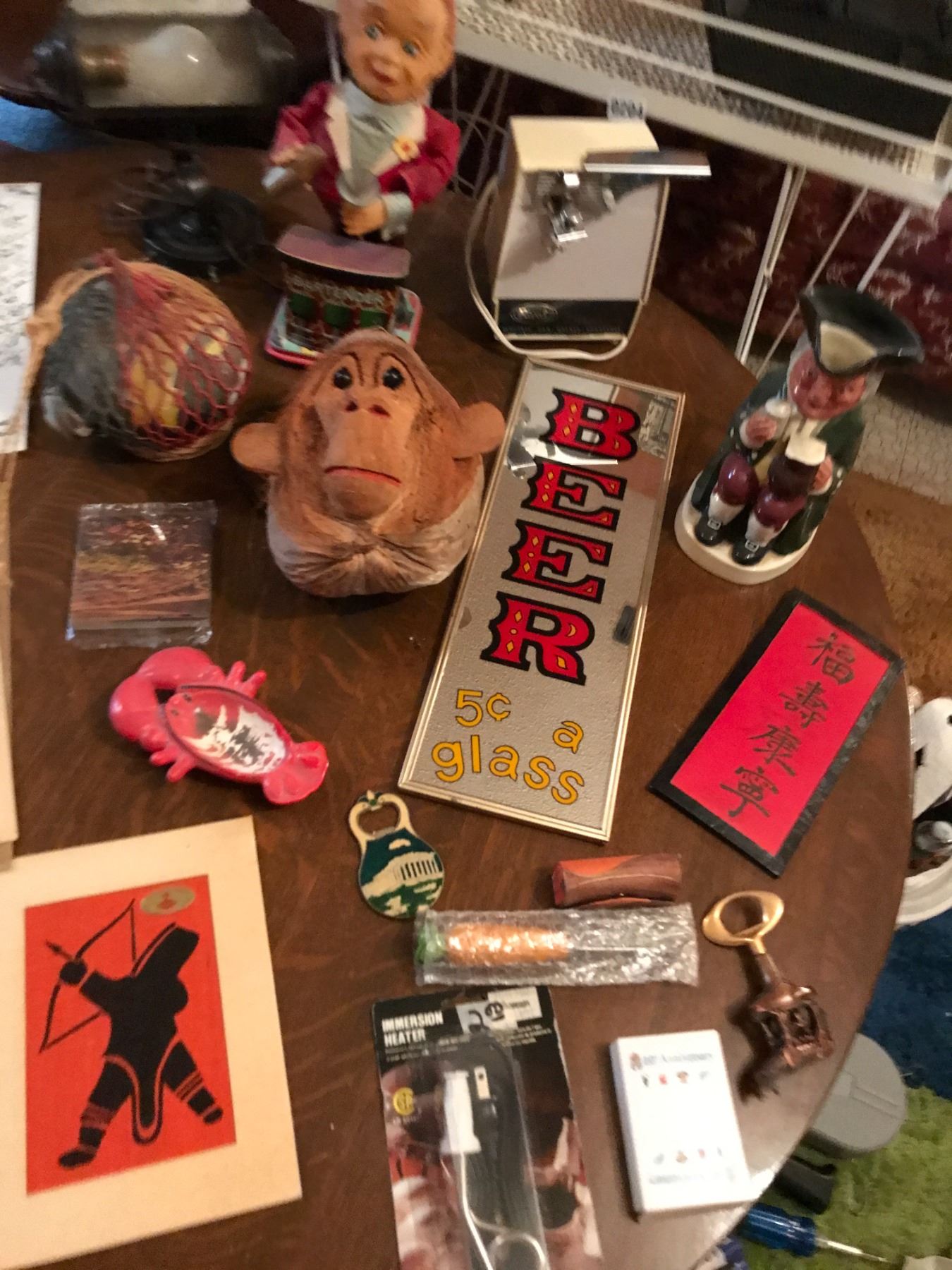 James Bell Sports Foundation Autographed Poster, Bar Accessories, Coconut Monkey Head, 3 Inuit Art (Kalvak) & Musical Toby Beer Stein