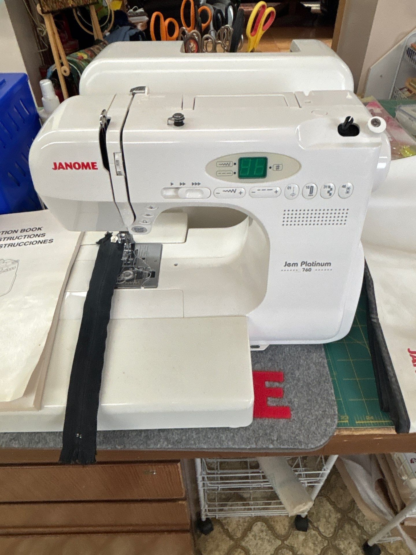 Janome Gem platinum 760 Sewing Machine with instruction manual carrying case and hardcover