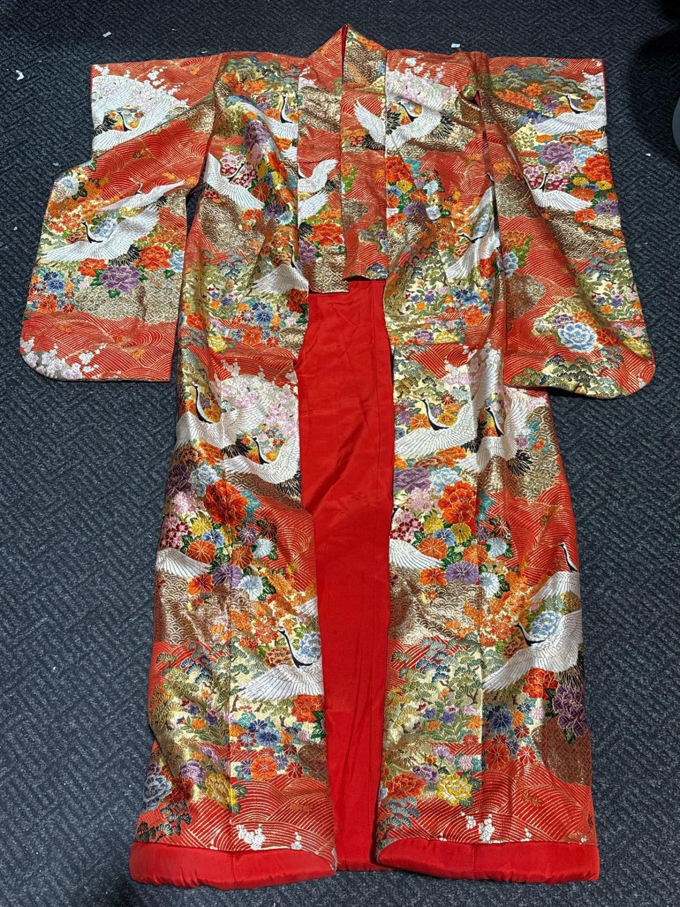 A stork motif on a kimono is a beautiful and meaningful design element, and it carries rich cultural symbolism in Japanese textile history—something collectors and appraisers should always pay attention to.