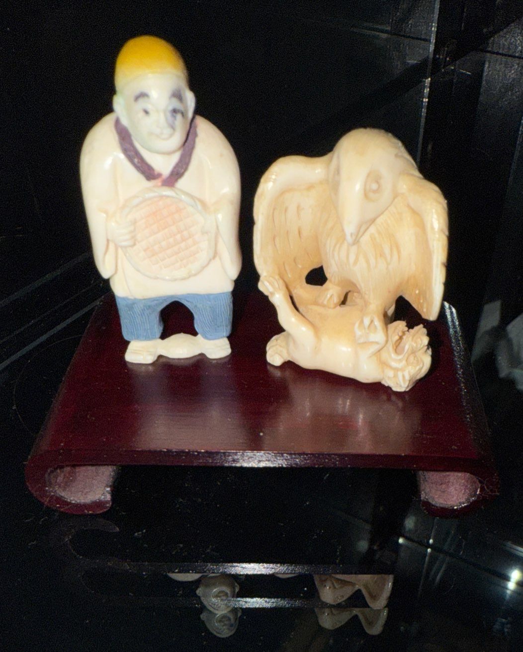 Japanese Carved Ivory Netsuke Figurines 3T (2)