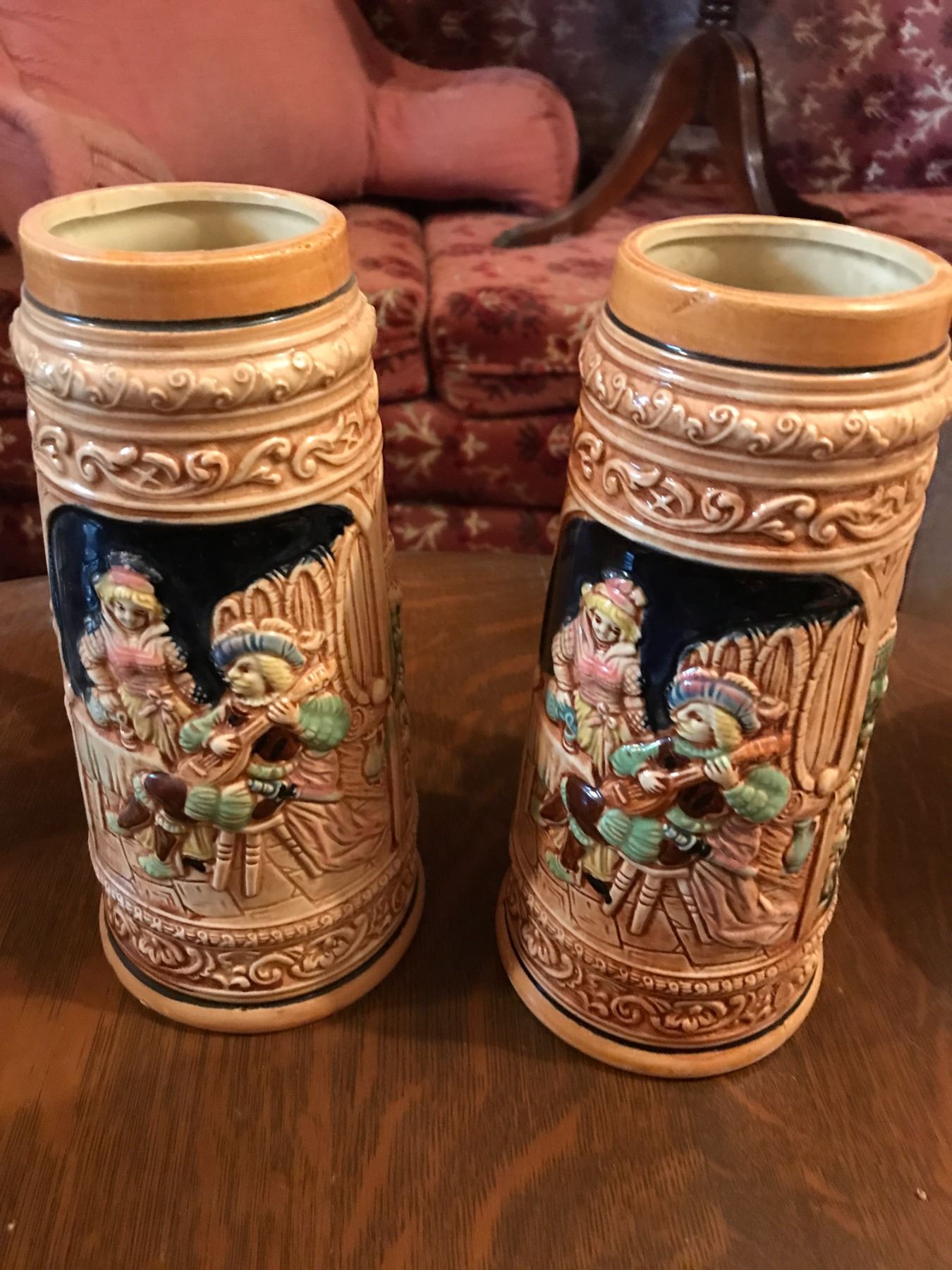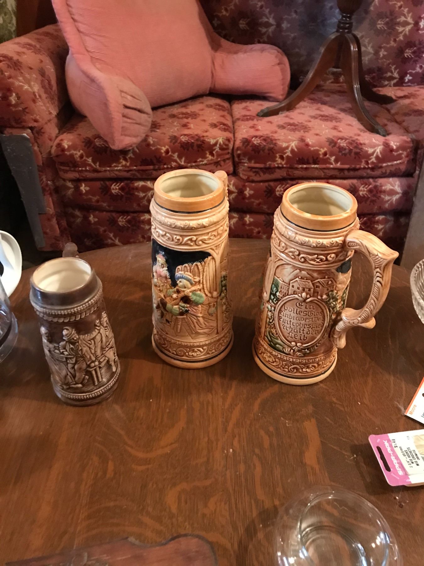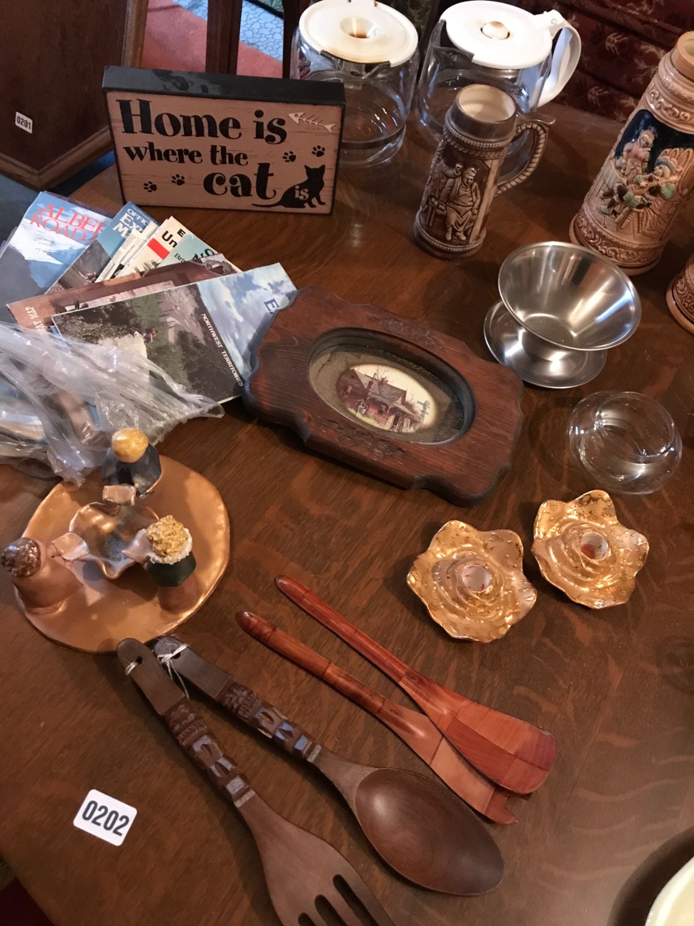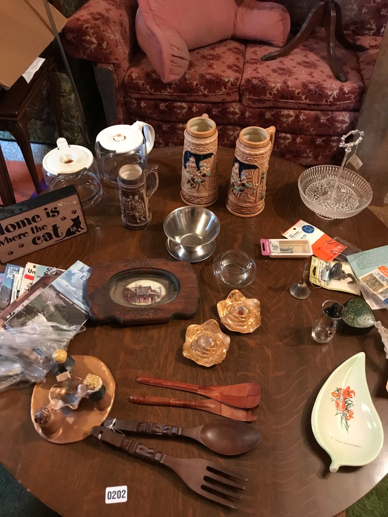 Japanese Porcelain Beer Steins, 2 Coffee Pots, Wooden Salad Spoons, Vintage Maps & Home Decor Etc.